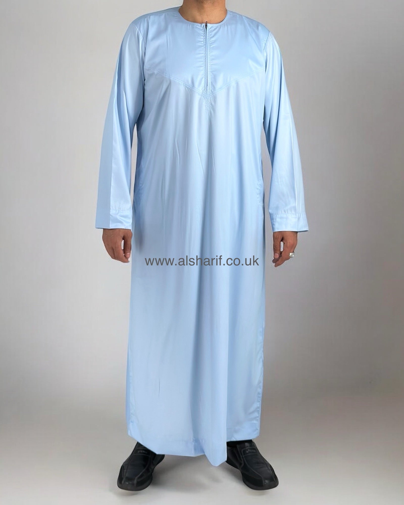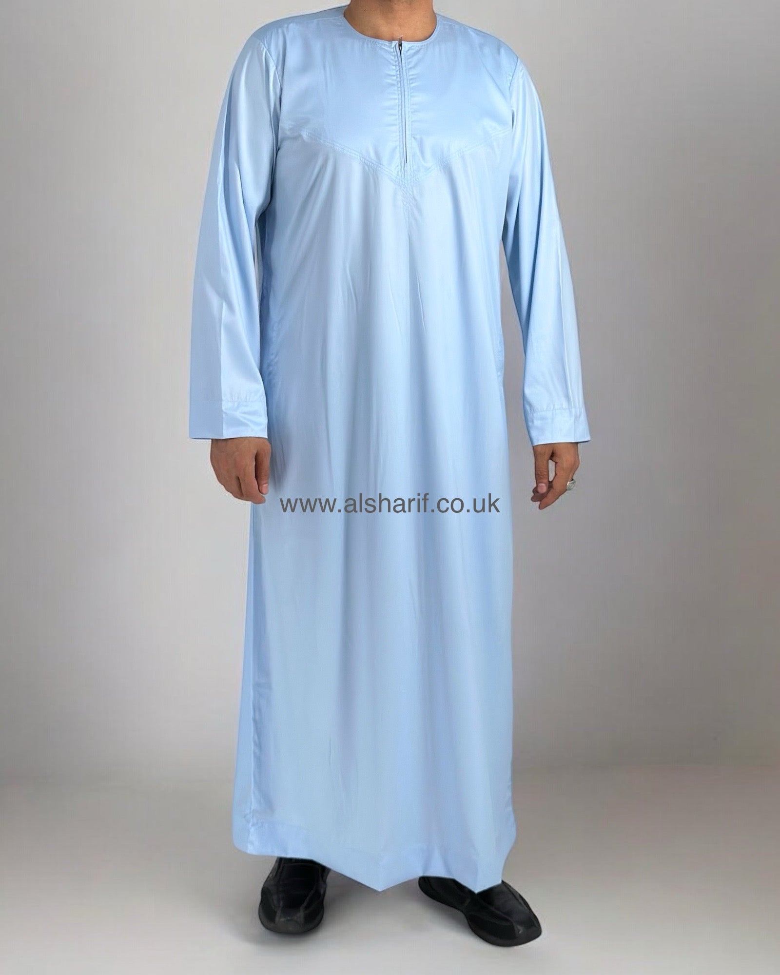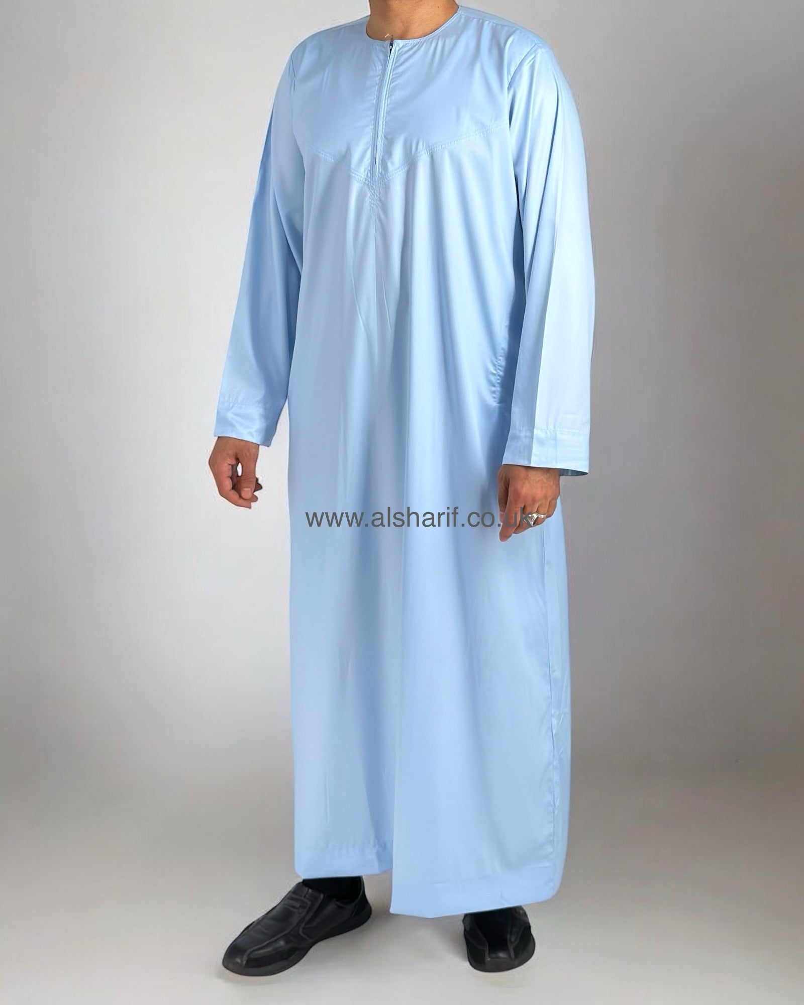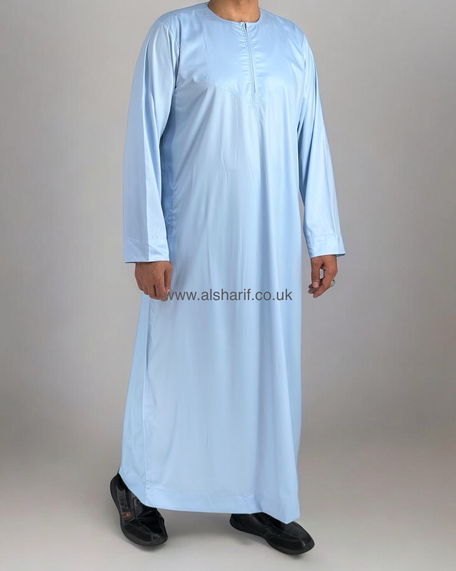 Light Blue Silky Thobe / Jubba Collarless With Zip (Size 56) 15