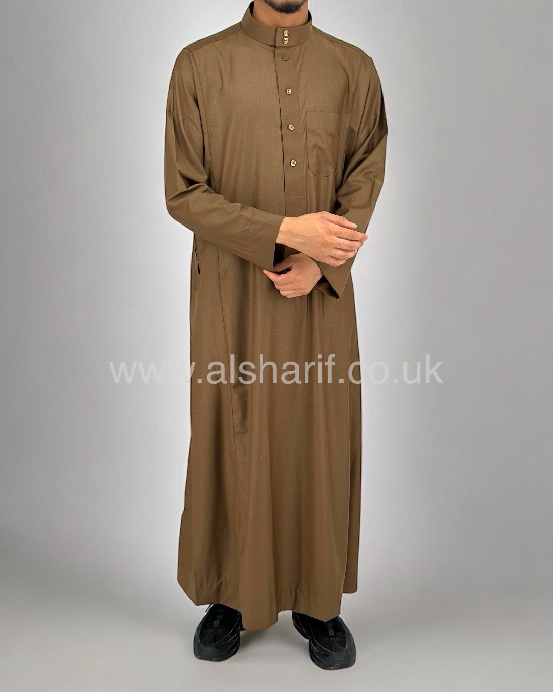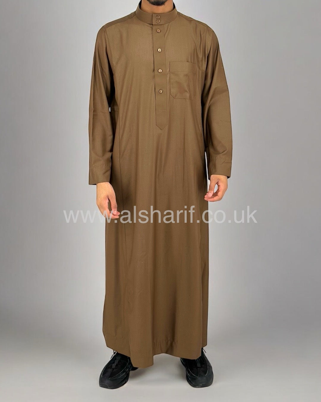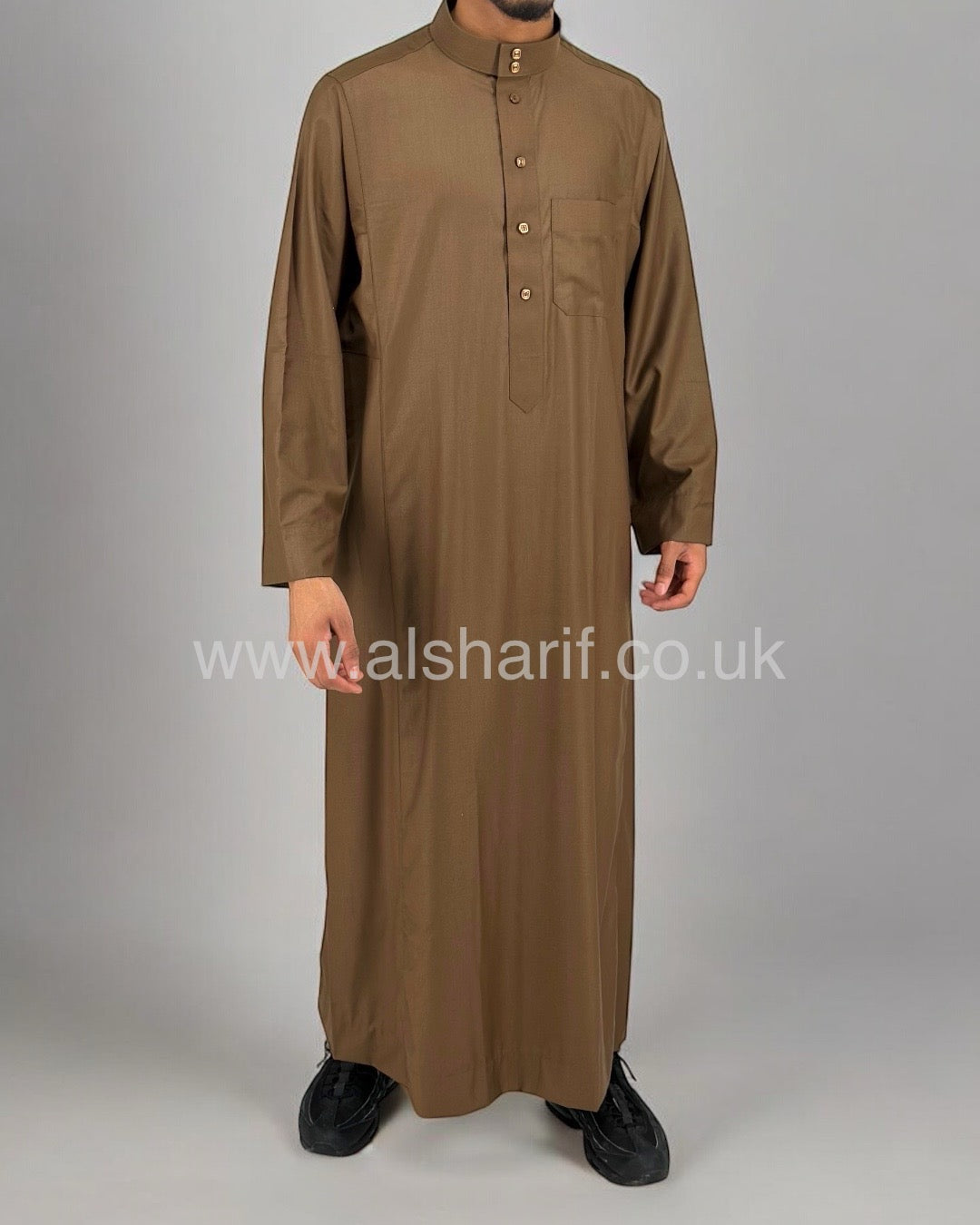 Brown Matte Collared Buttoned Thobe (Size 56-22) 11