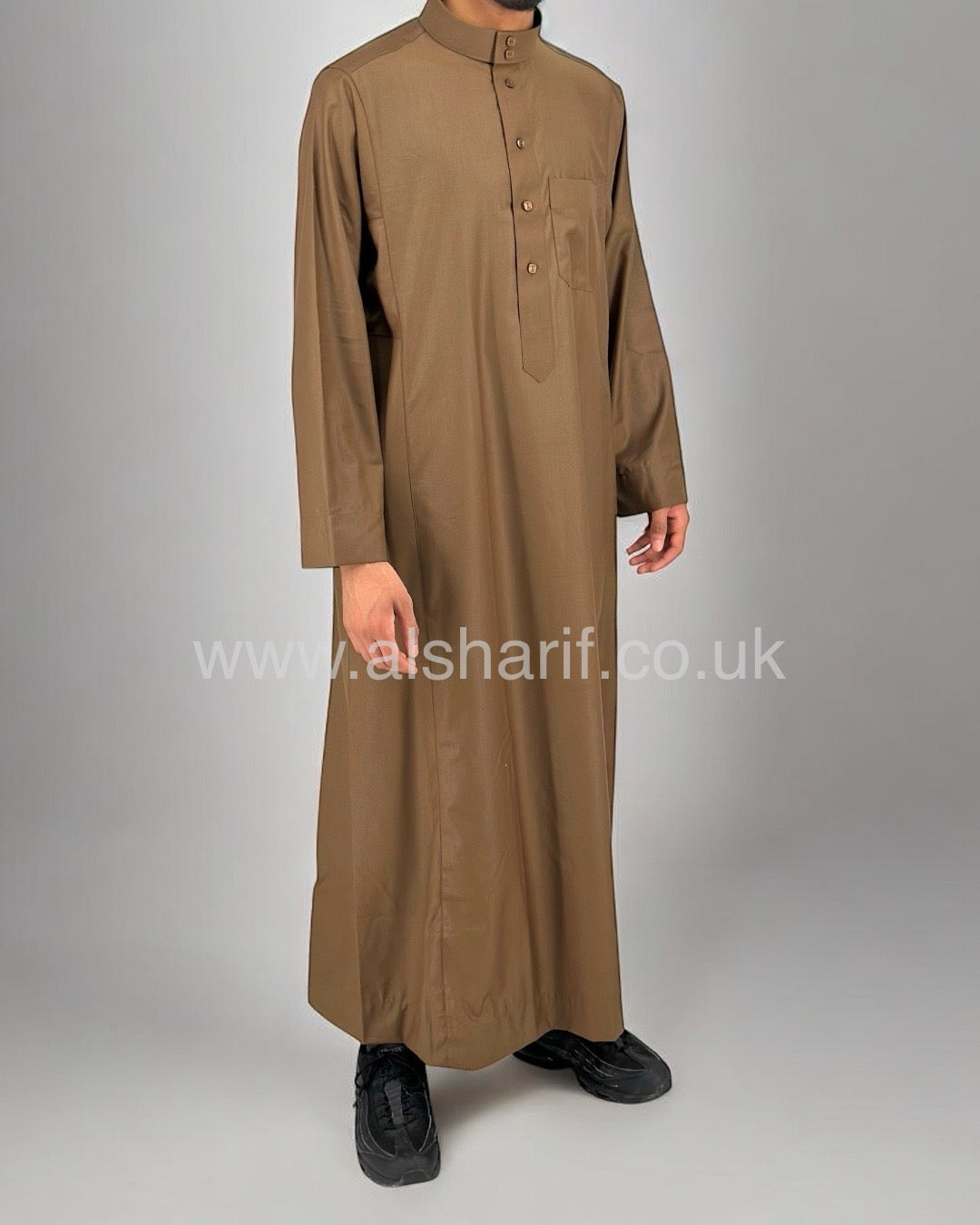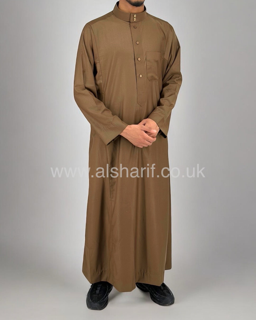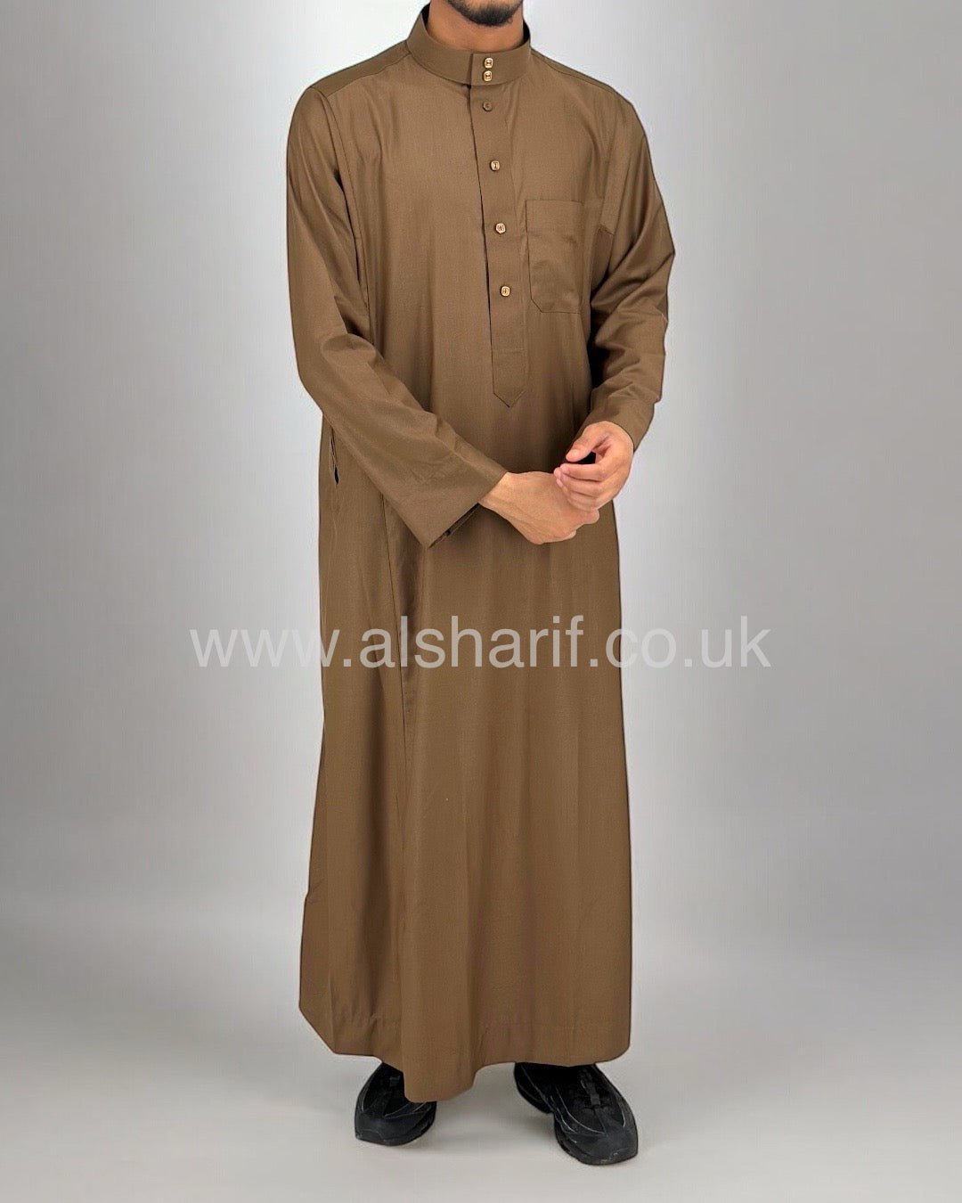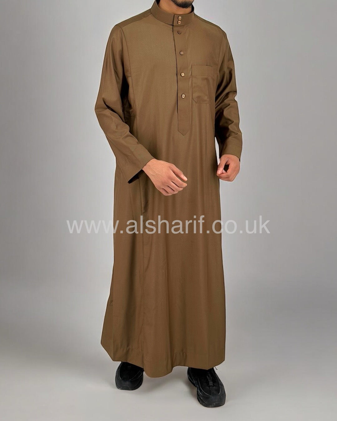 Brown Matte Collared Buttoned Thobe (Size 56-22) 11