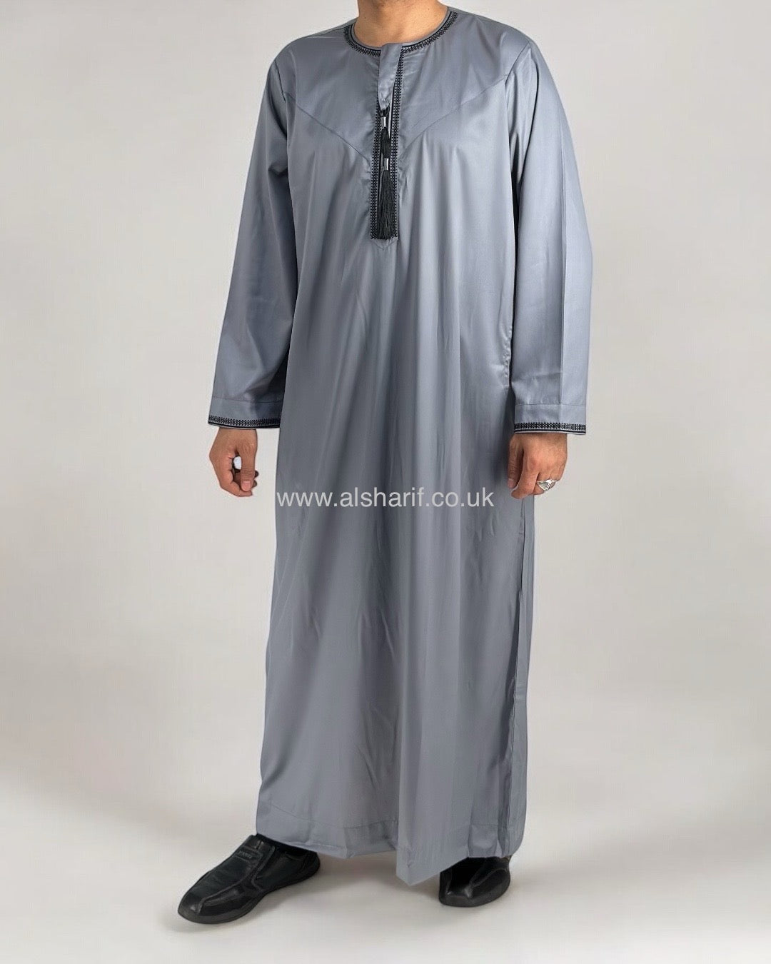 Grey Silky Thobe / Jubba Collarless With Tassel & Zip (Size 56) 18