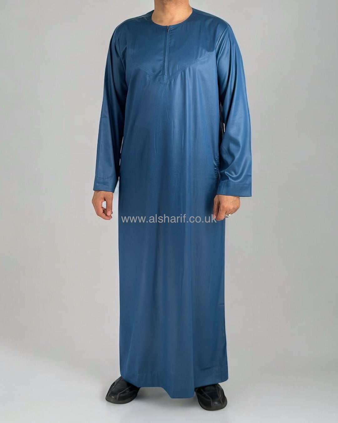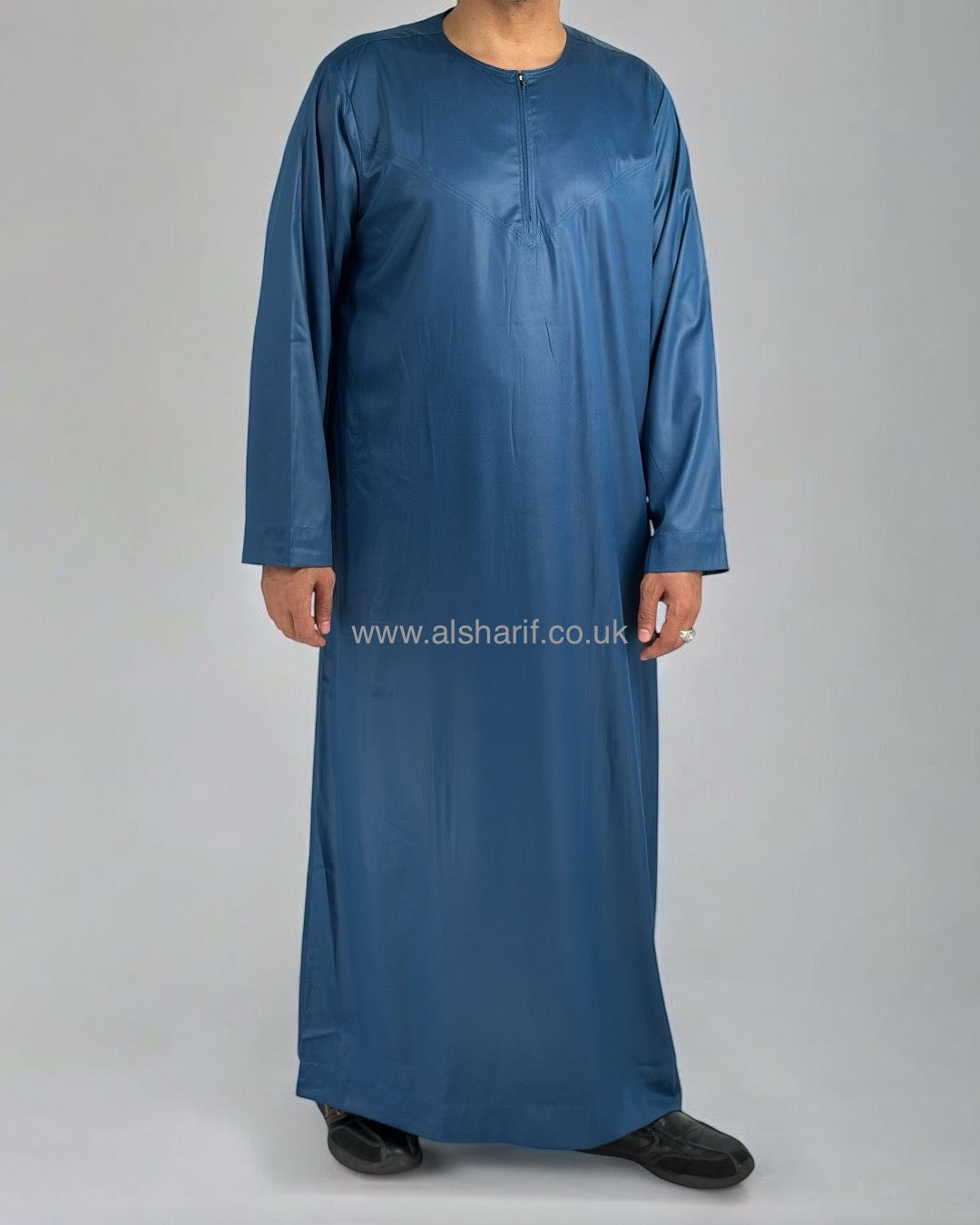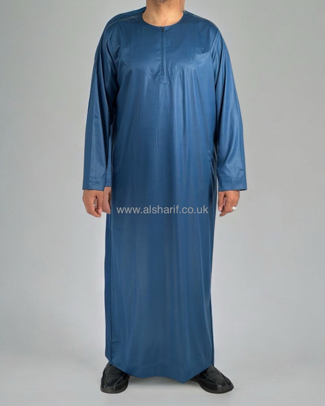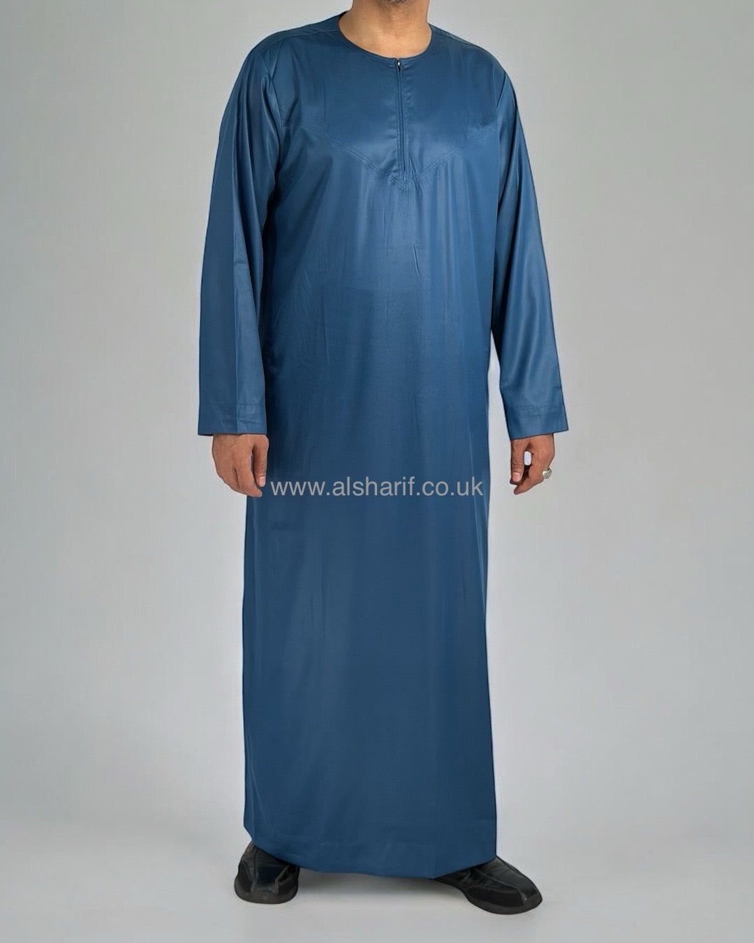 Teal Blue Silky Thobe / Jubba Collarless With Zip (Size 56) 17