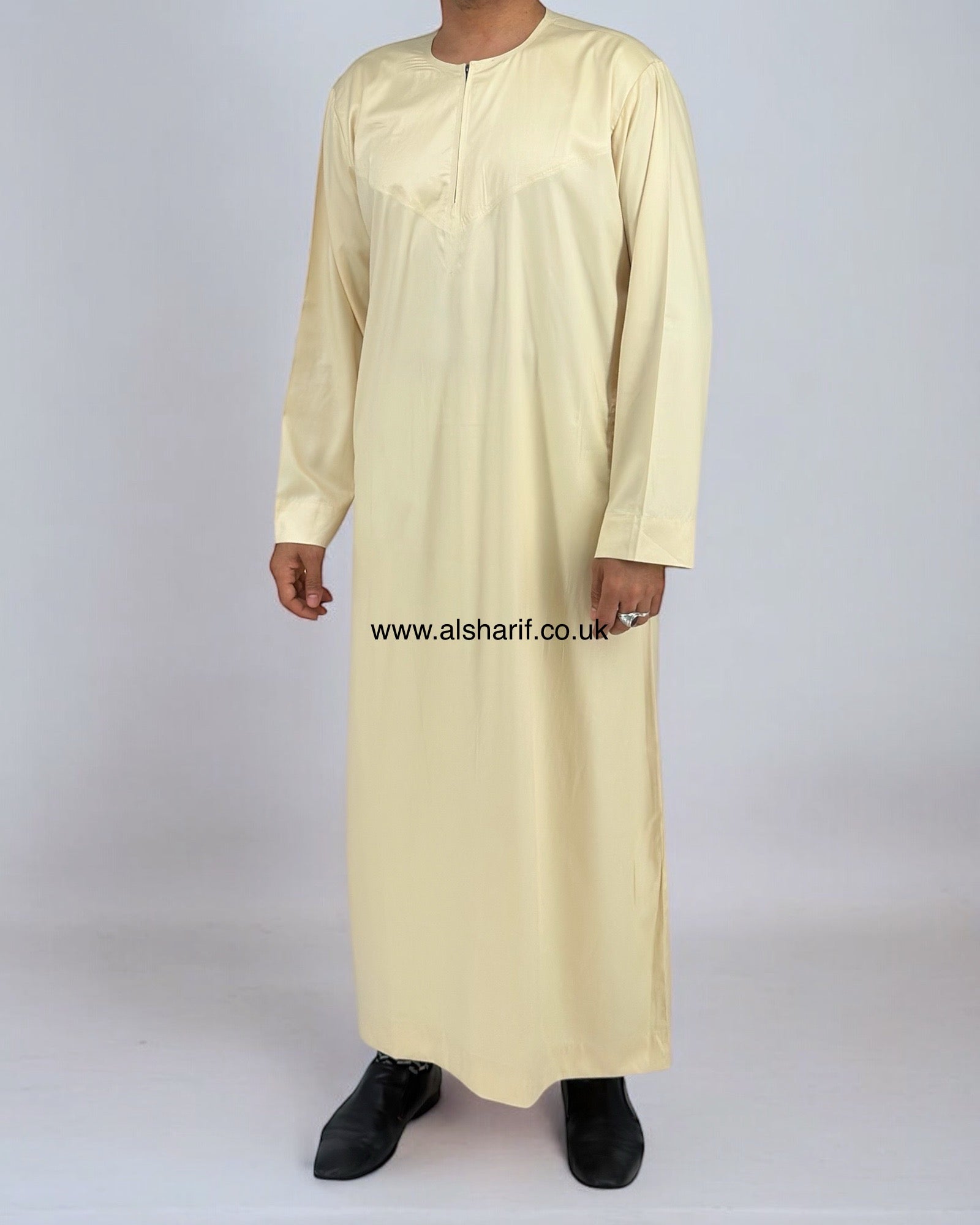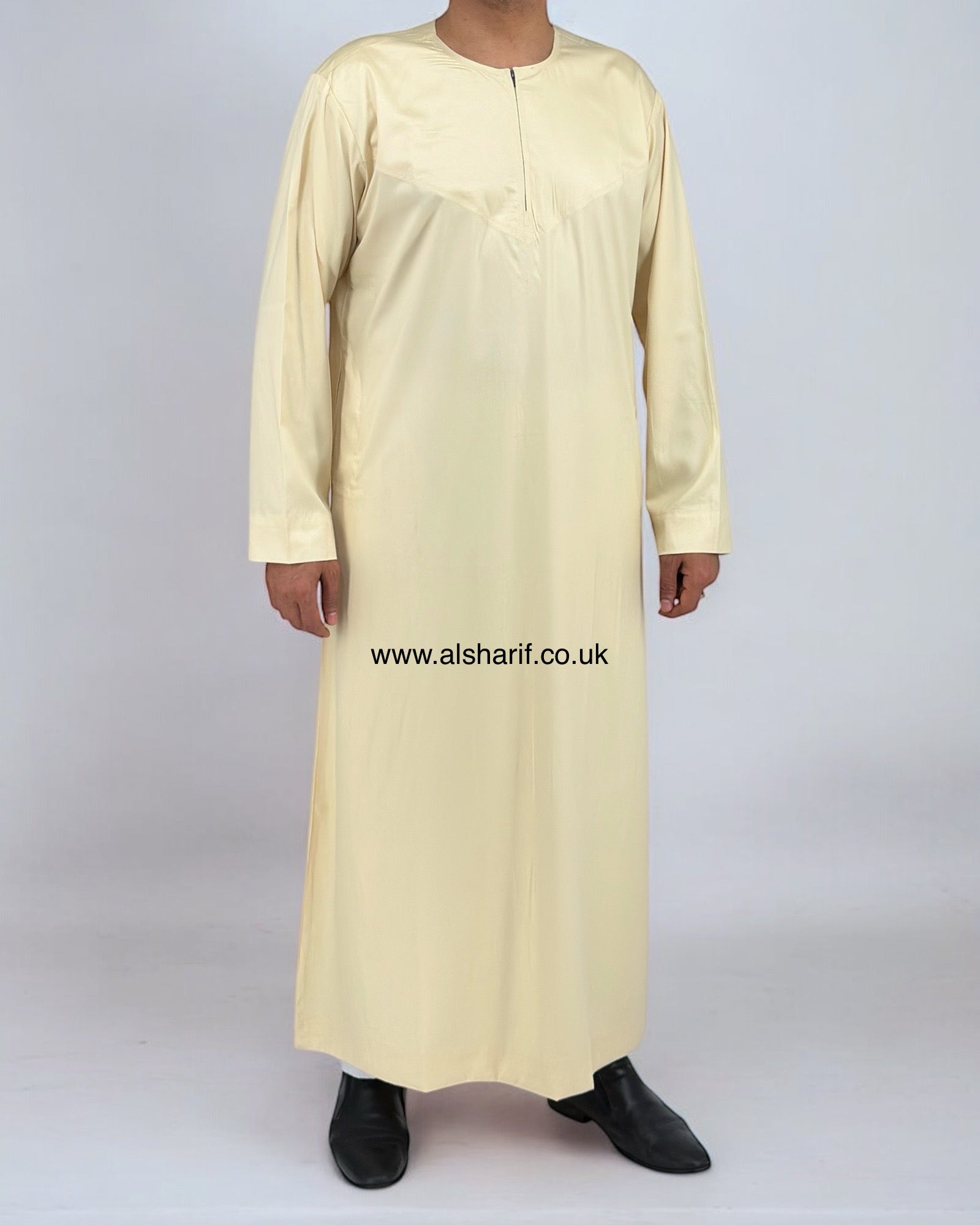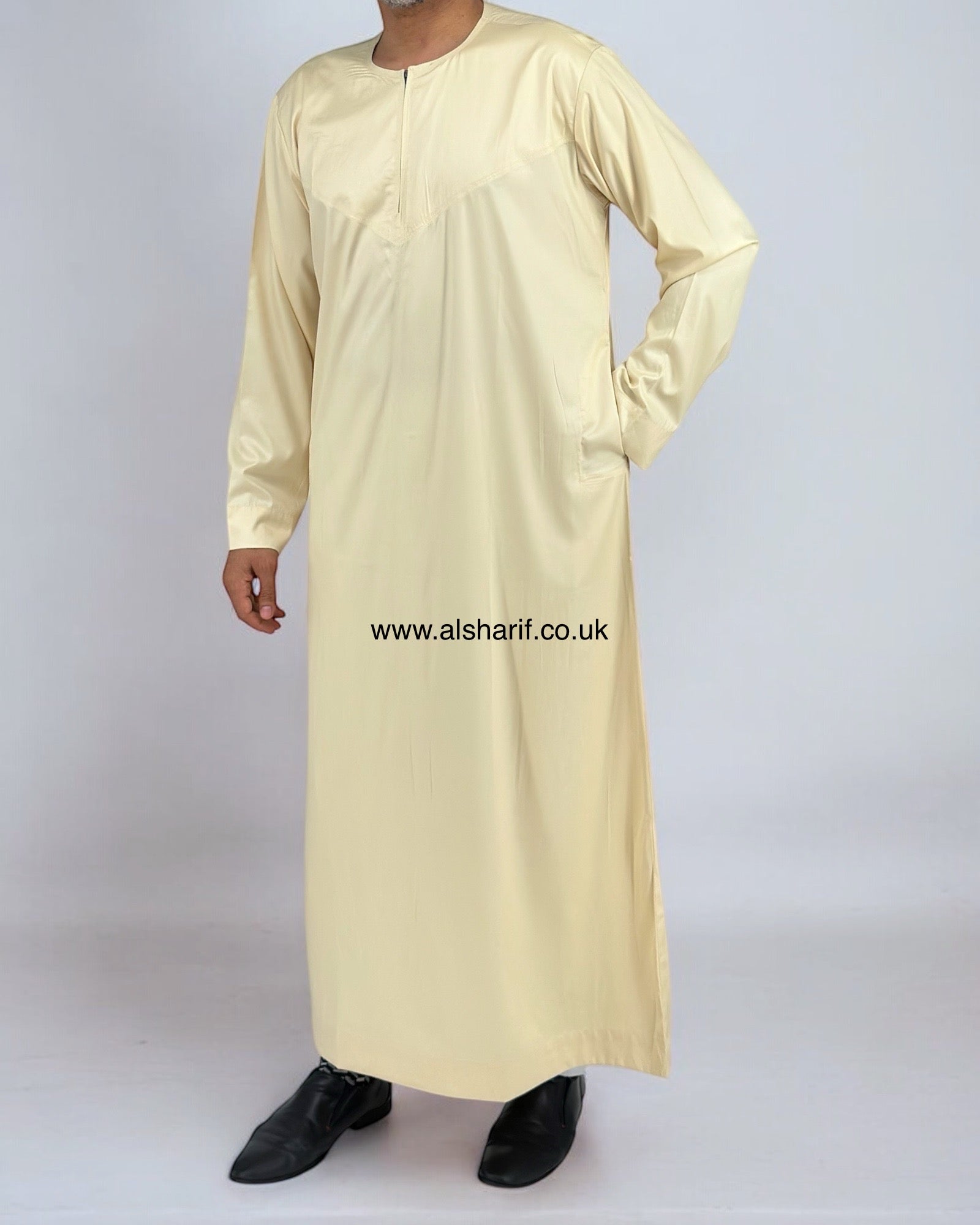Cream Silky Thobe / Jubba Collarless With Zip (Size 56M) 12