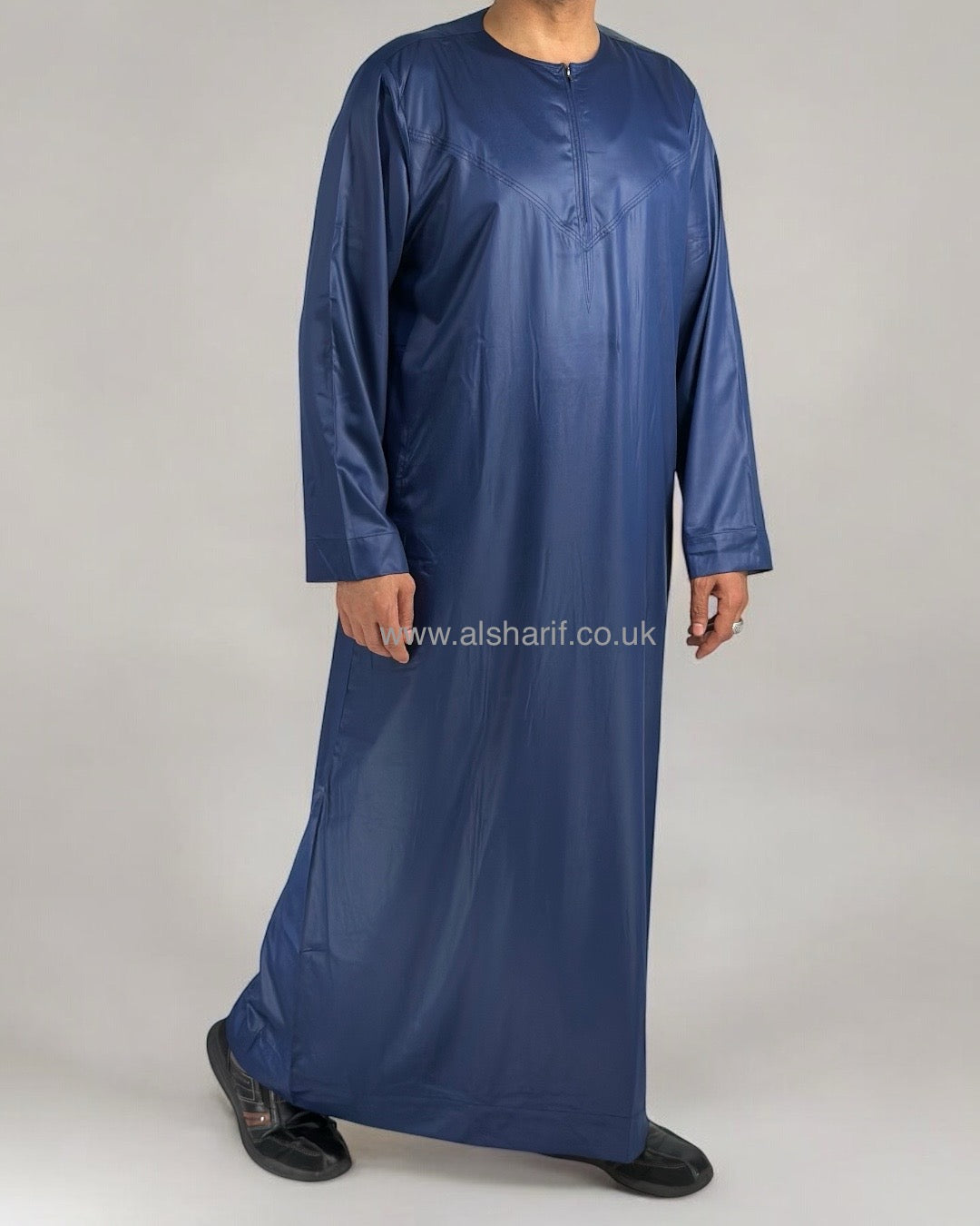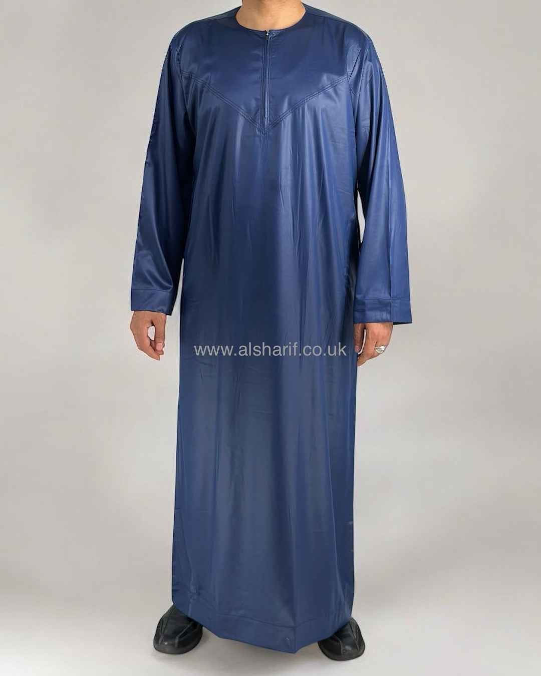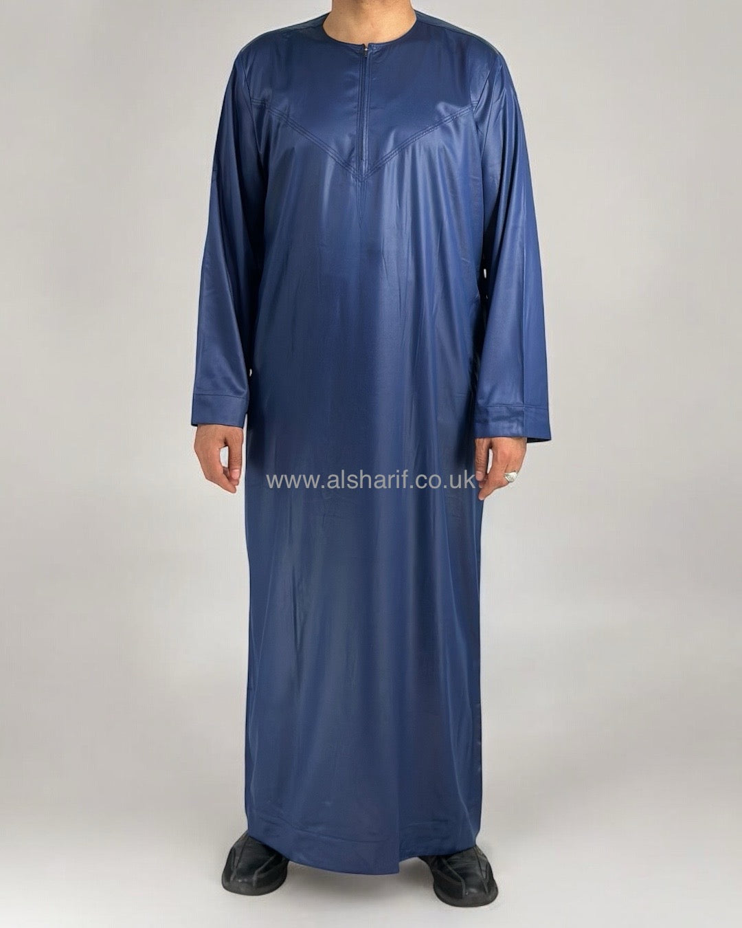 Navy Blue Silky Thobe / Jubba Collarless With Zip (Size 56) 16
