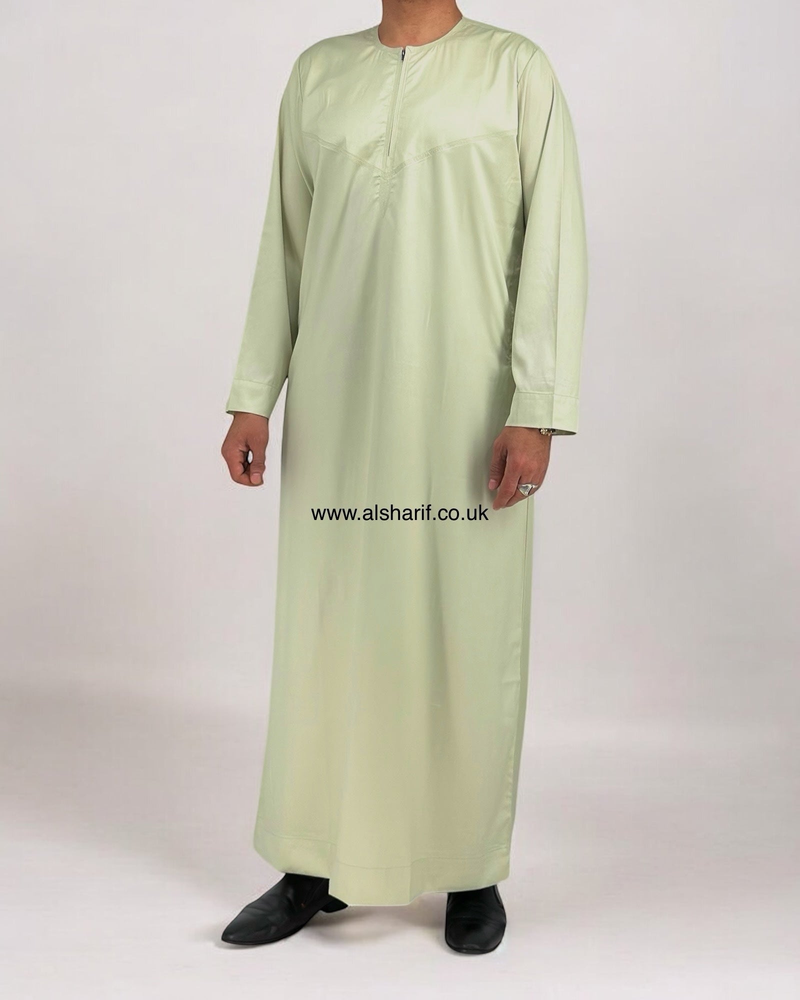 Mint Green Silky Thobe / Jubba Collarless With Zip (Size 56M) 8
