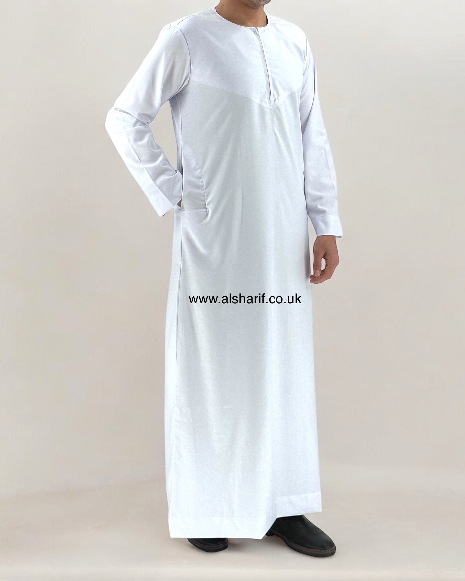White Matte Thobe / Jubba Collarless With Zip (56) 21