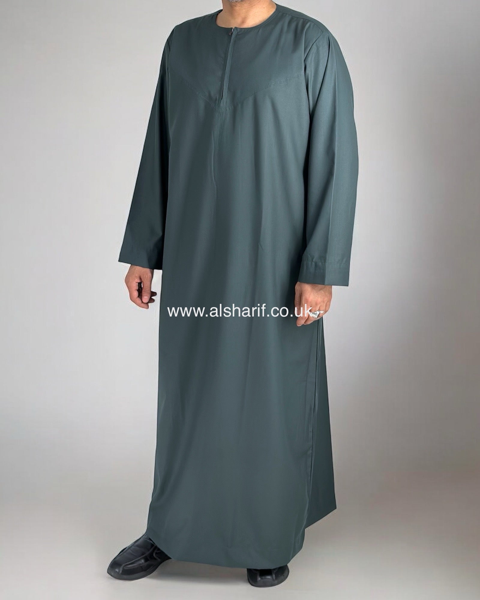 Dark Green Matte Thobe Collarless With Zip (Size 58) 12