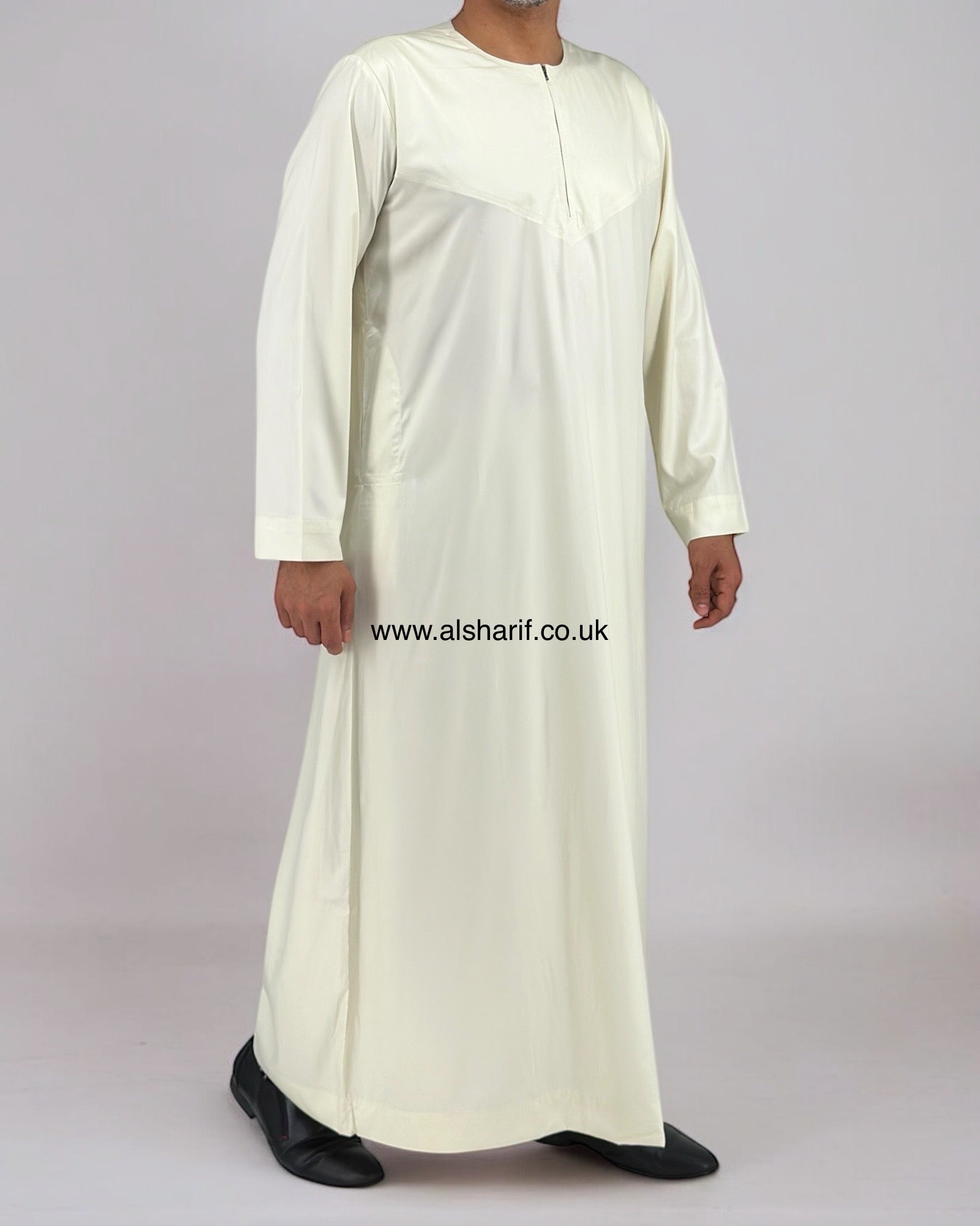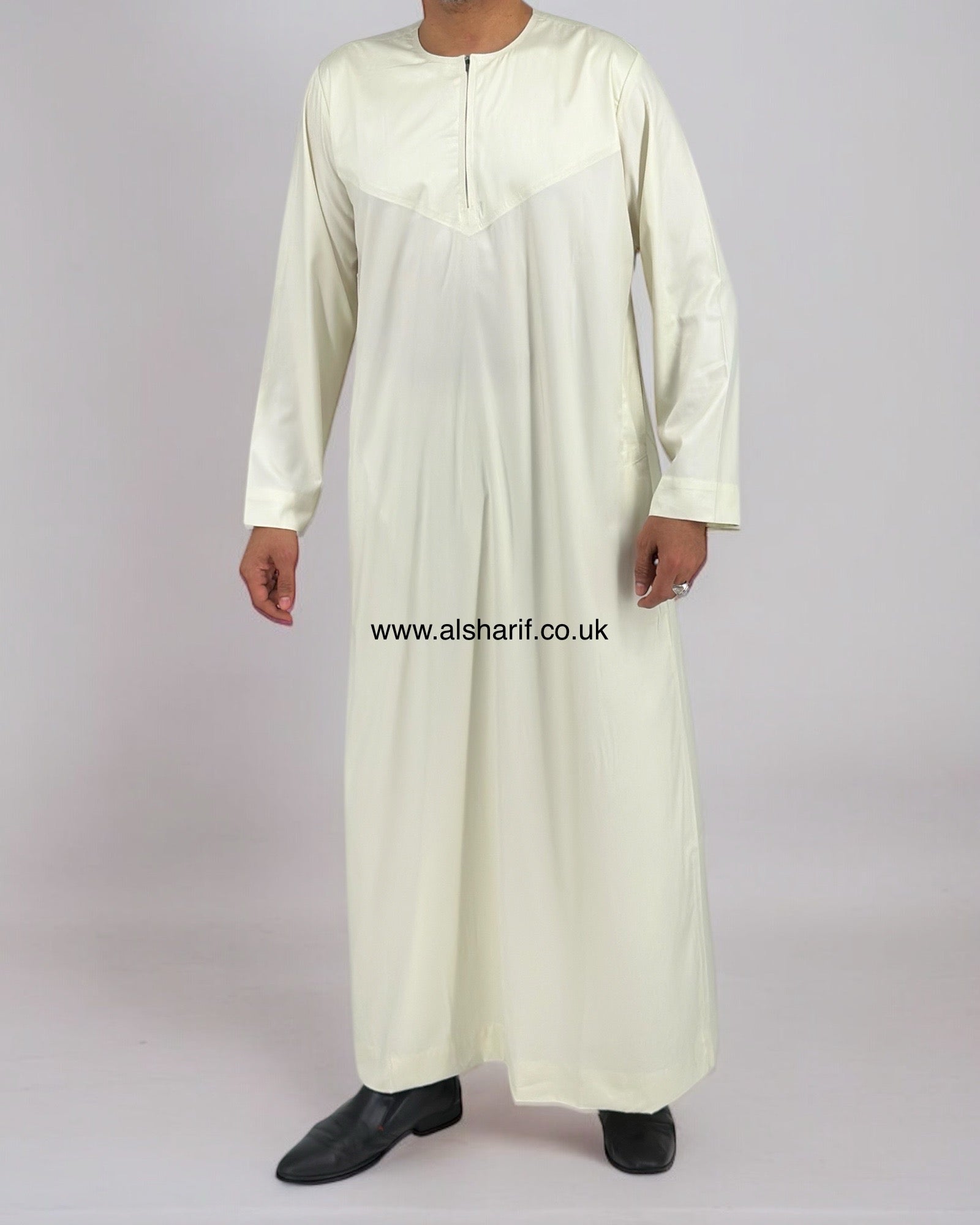 Cream Silky Thobe / Jubba Collarless With Zip (Size 58L) 11