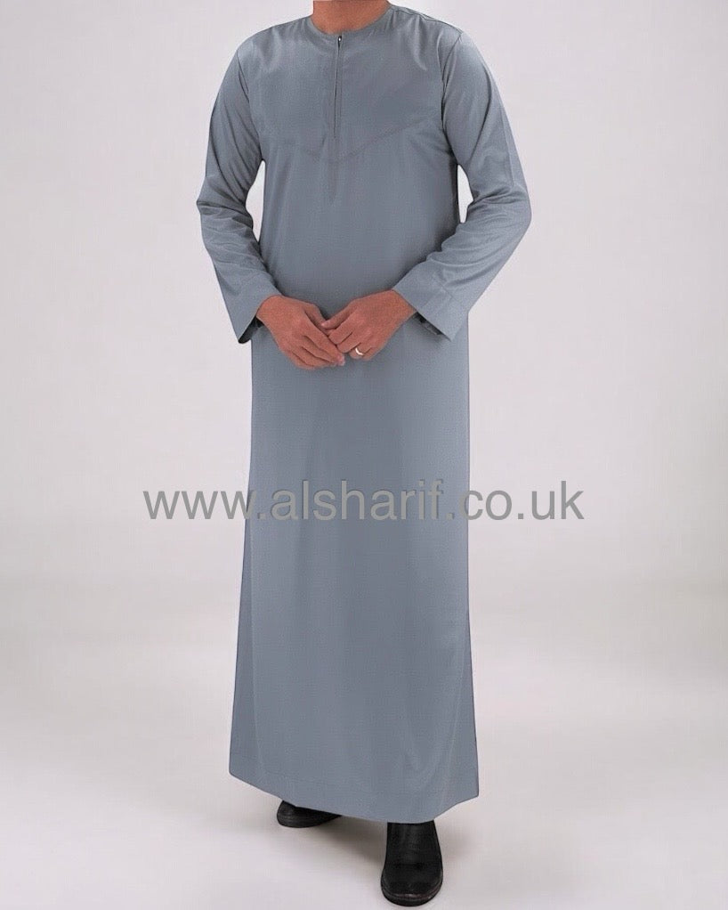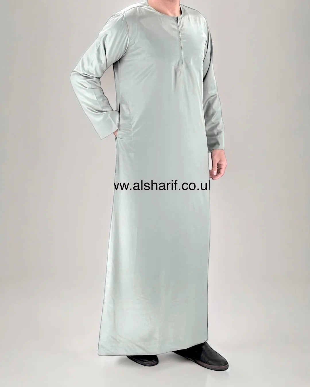 Grey Silky Thobe / Jubba Collarless With Zip (Size 58) 19