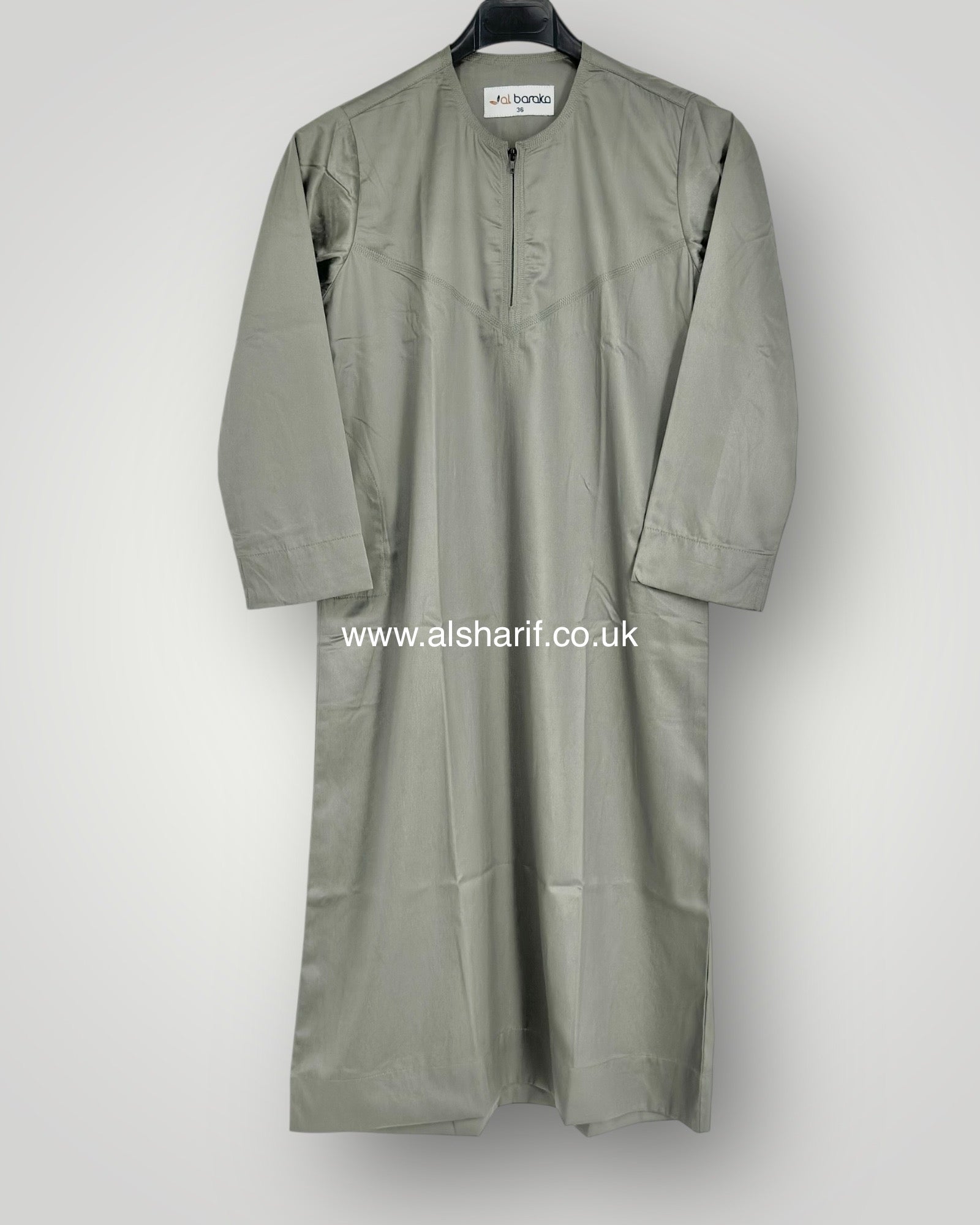 Grey Matte Boys Thobe Jubba Collarless with Zip (Size 36) 14
