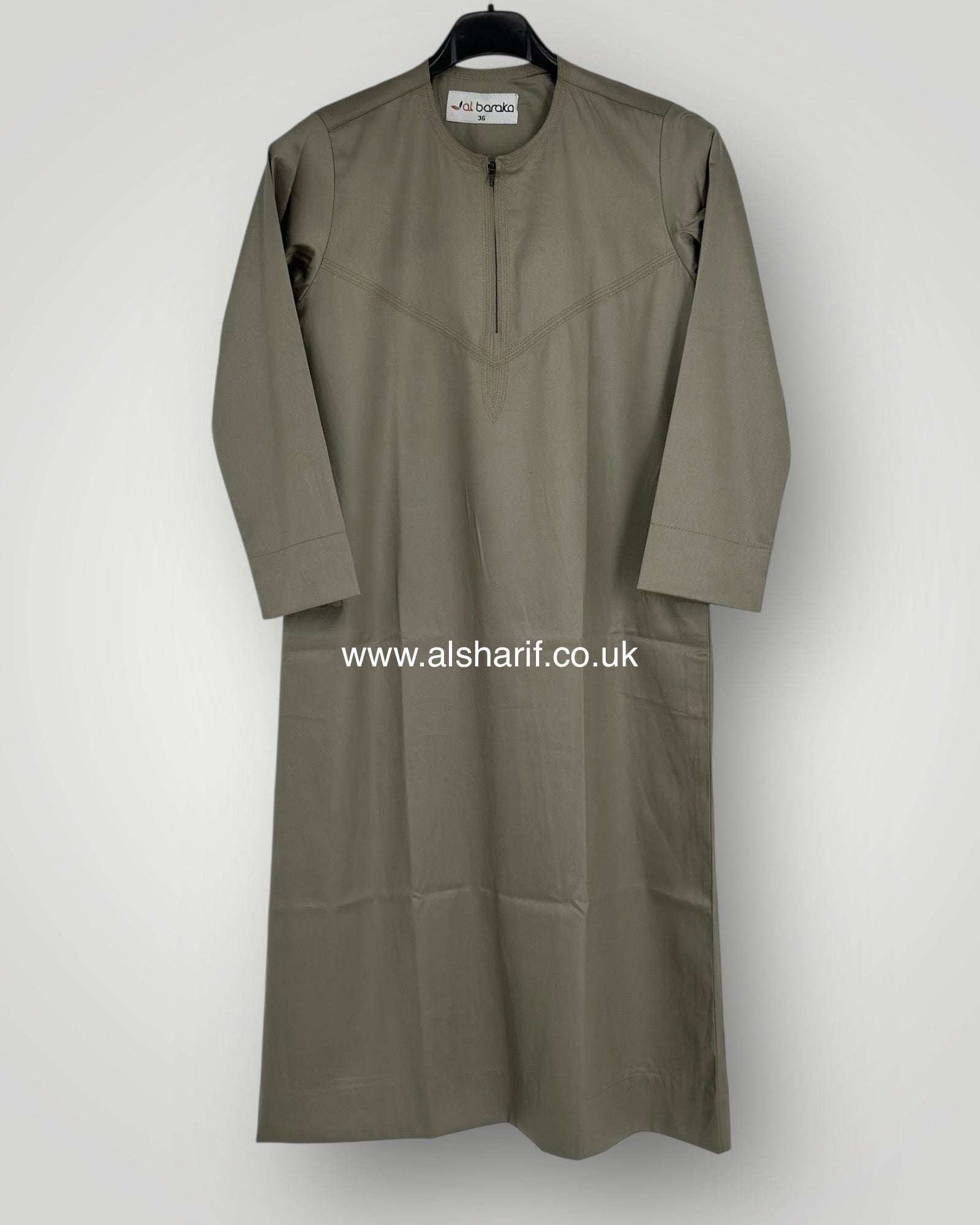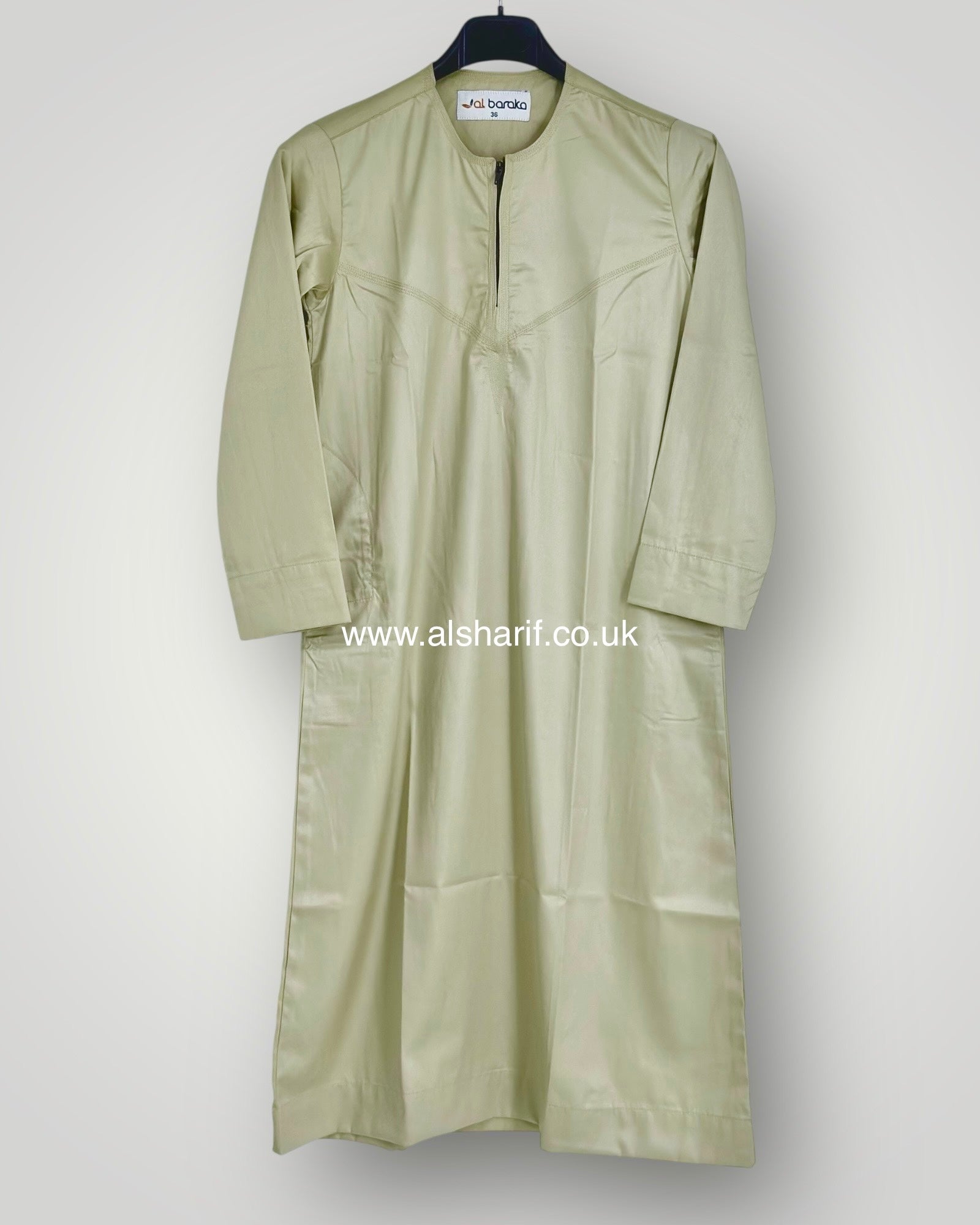 Khaki Green Silky Boys Thobe Jubba Collarless with Zip (Size 36) 10