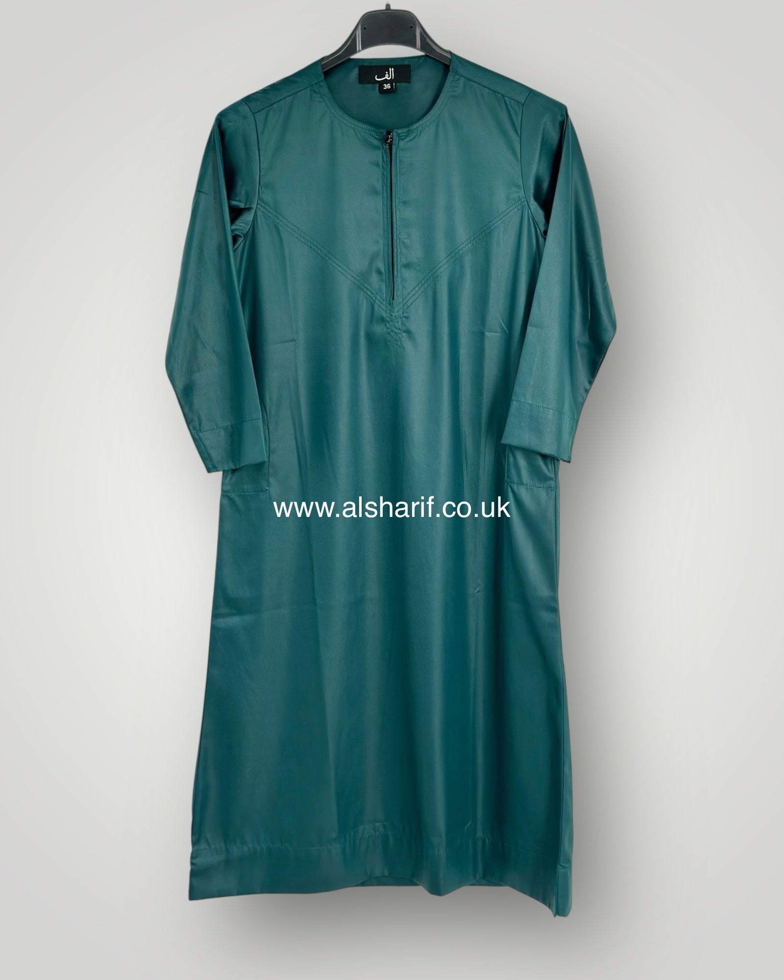 Teal Green Silky Boys Thobe Jubba Collarless with Zip (Size 36) 12