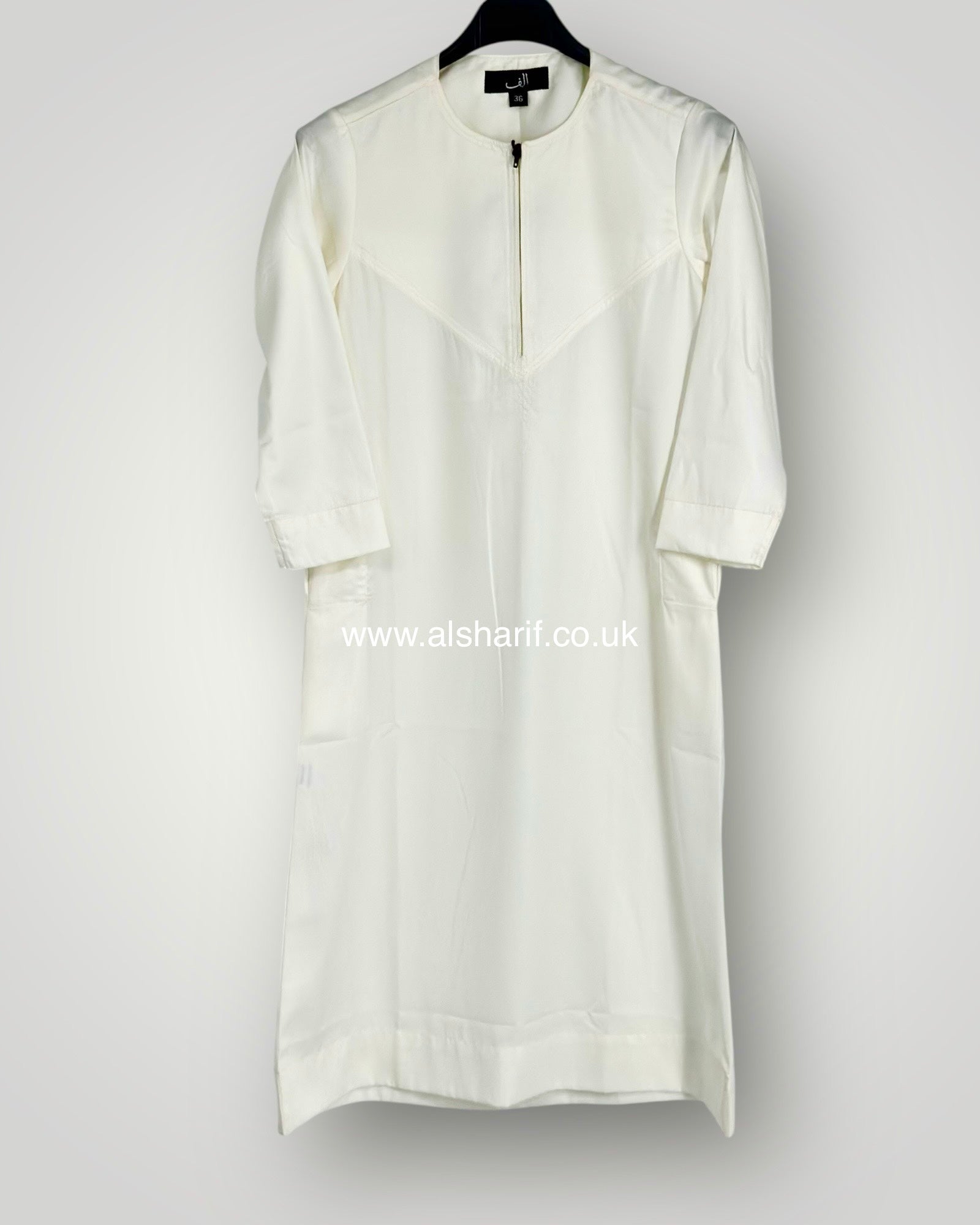 Cream Silky Boys Thobe Jubba Collarless with Zip (Size 36) 8