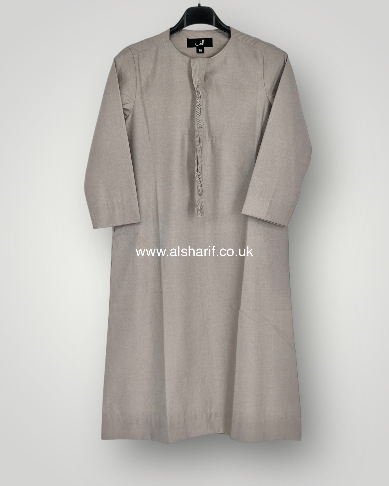 Light Mocha Matte Boys Thobe Jubba Collarless with Tassel & Zip (Size 36) 16