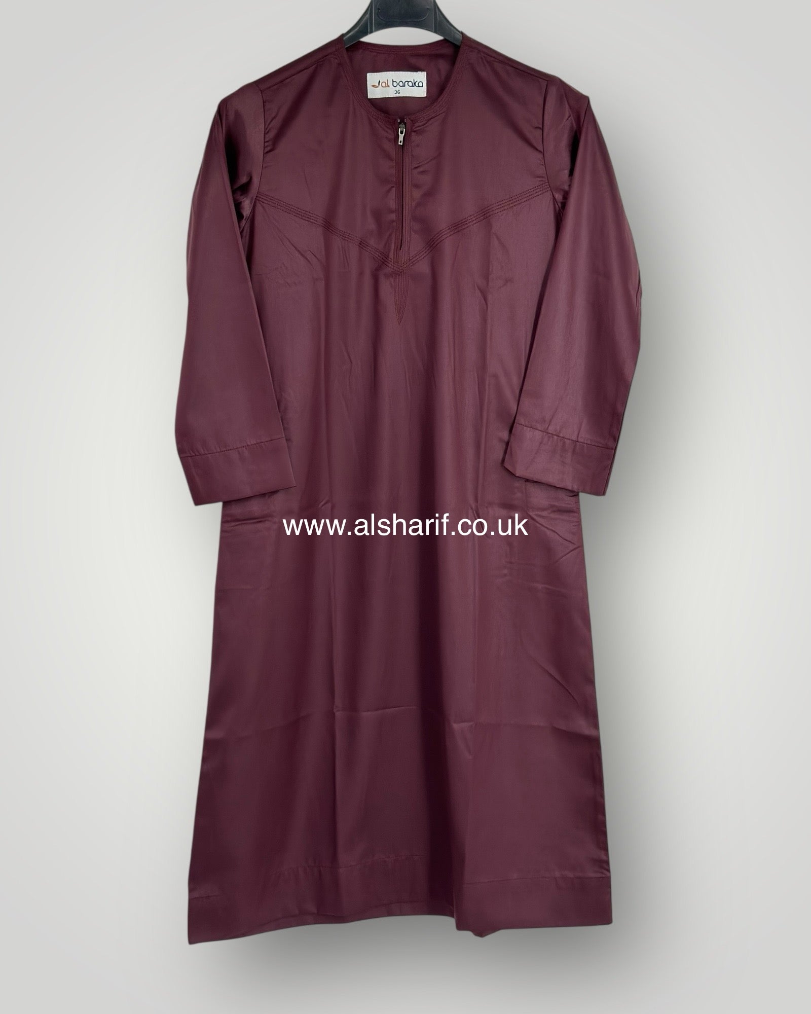 Maroon Silky Boys Thobe Jubba Collarless with Zip (Size 36) 5