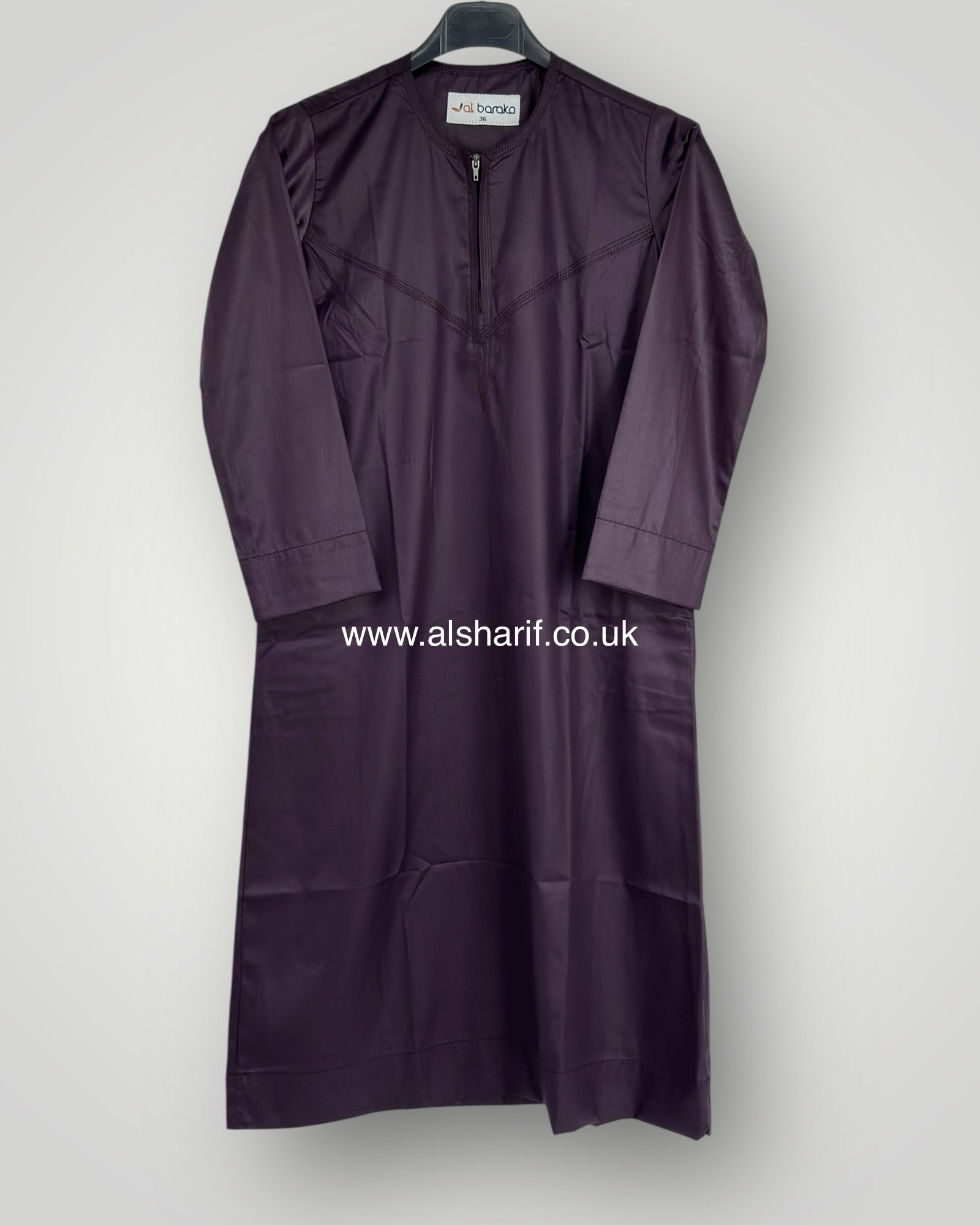 Dark Purple Matte Boys Thobe Jubba Collarless with Zip (Size 36) 13