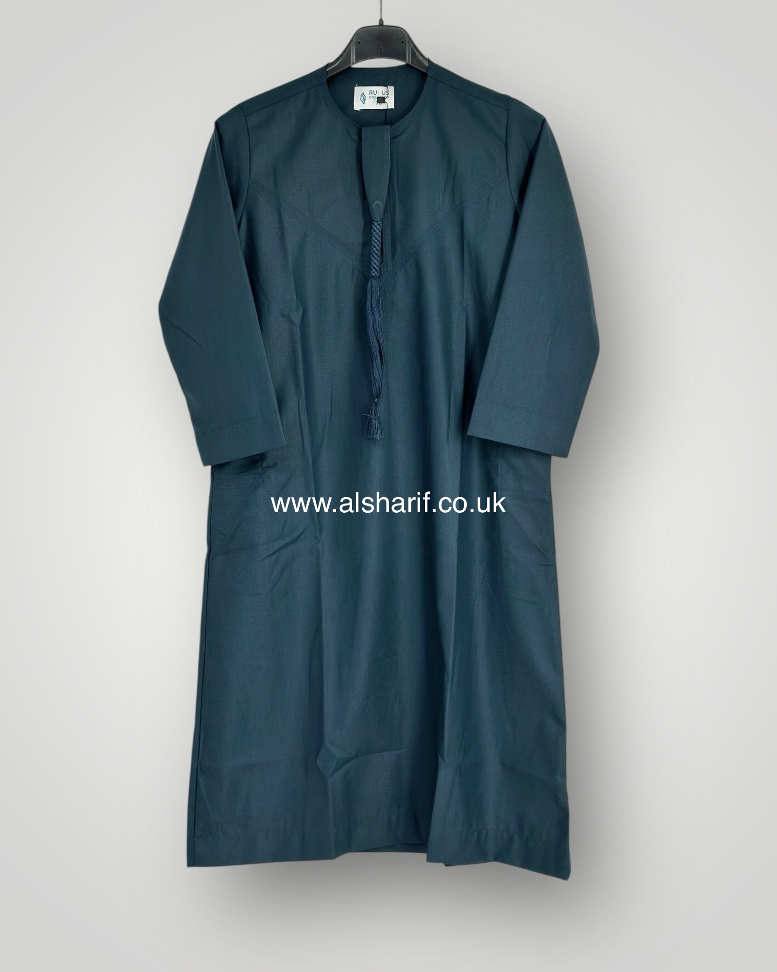 Teal Blue Matte Boys Thobe Jubba Collarless with Tassel & Zip (Size 36) 15