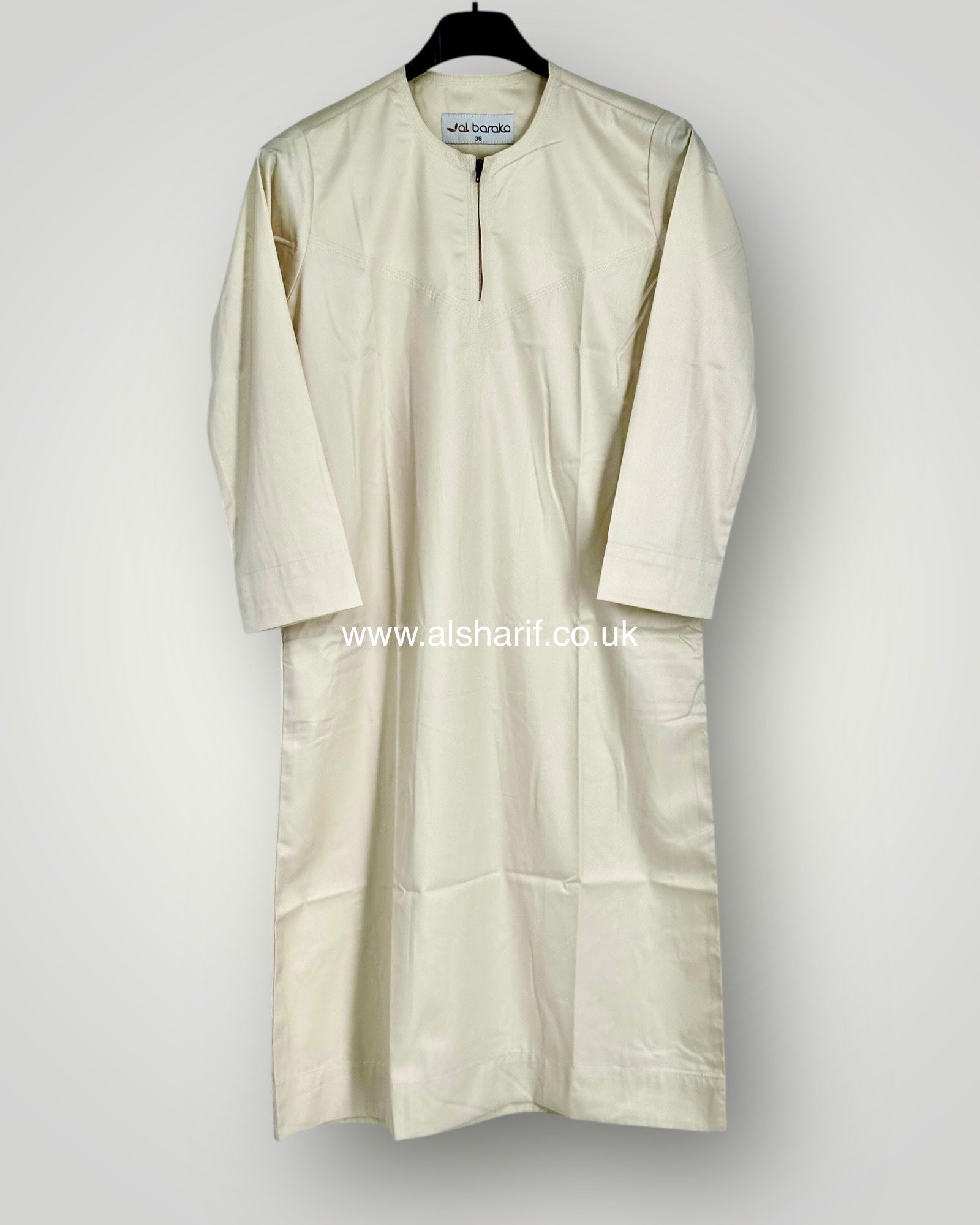 Light Cream Silky Boys Thobe Jubba Collarless with Zip (Size 36) 9
