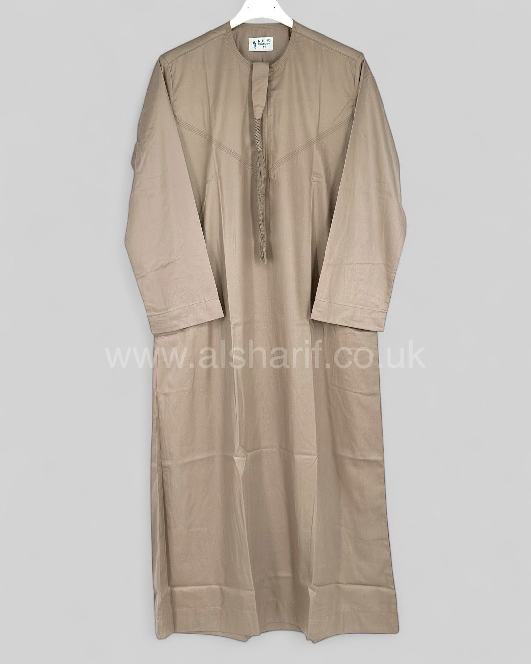 Beige Silky Boys Thobe Jubba Collarless with Tassel & Zip (46-5)