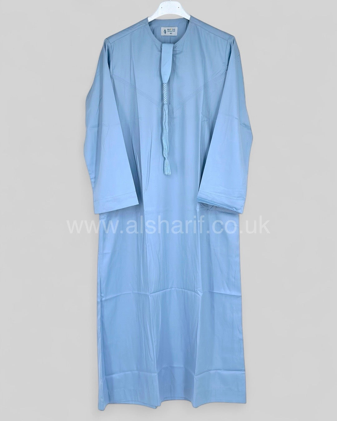 Light Blue Silky Boys Thobe Jubba Collarless with Tassel & Zip (46-4)