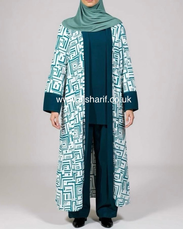 Our 3 Piece Set Matching Top Trouser Kimono combines simplicity with bold patterns, making it a versatile outfit suitable for various occasions.