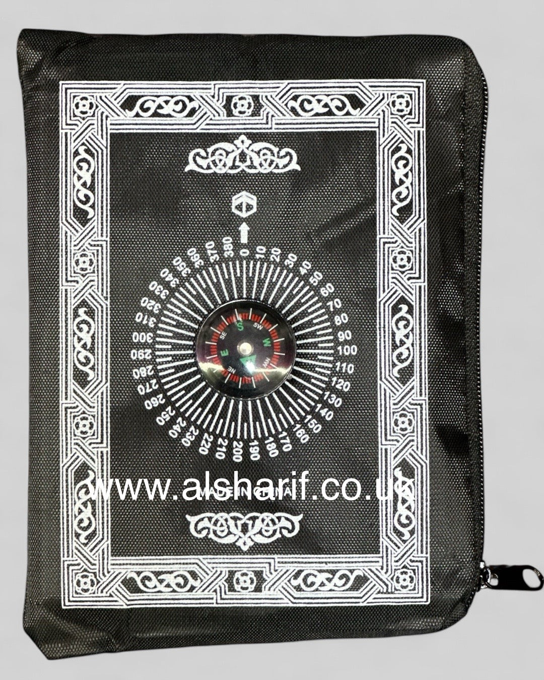 Black Pocket Travel Prayer Mat with Compass and Bag