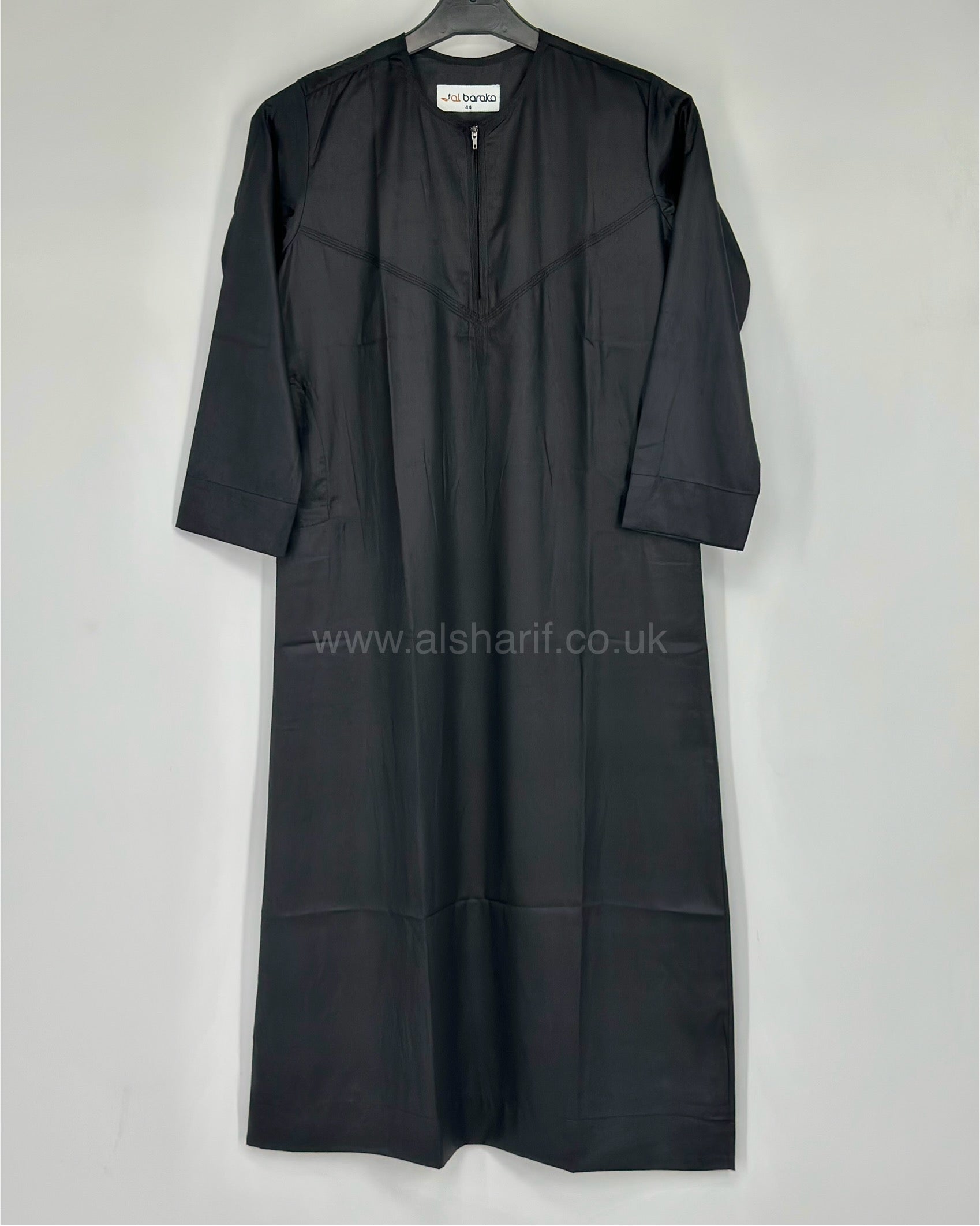 Black Silky Boys Thobe Jubba Collarless with Zip (44-4)