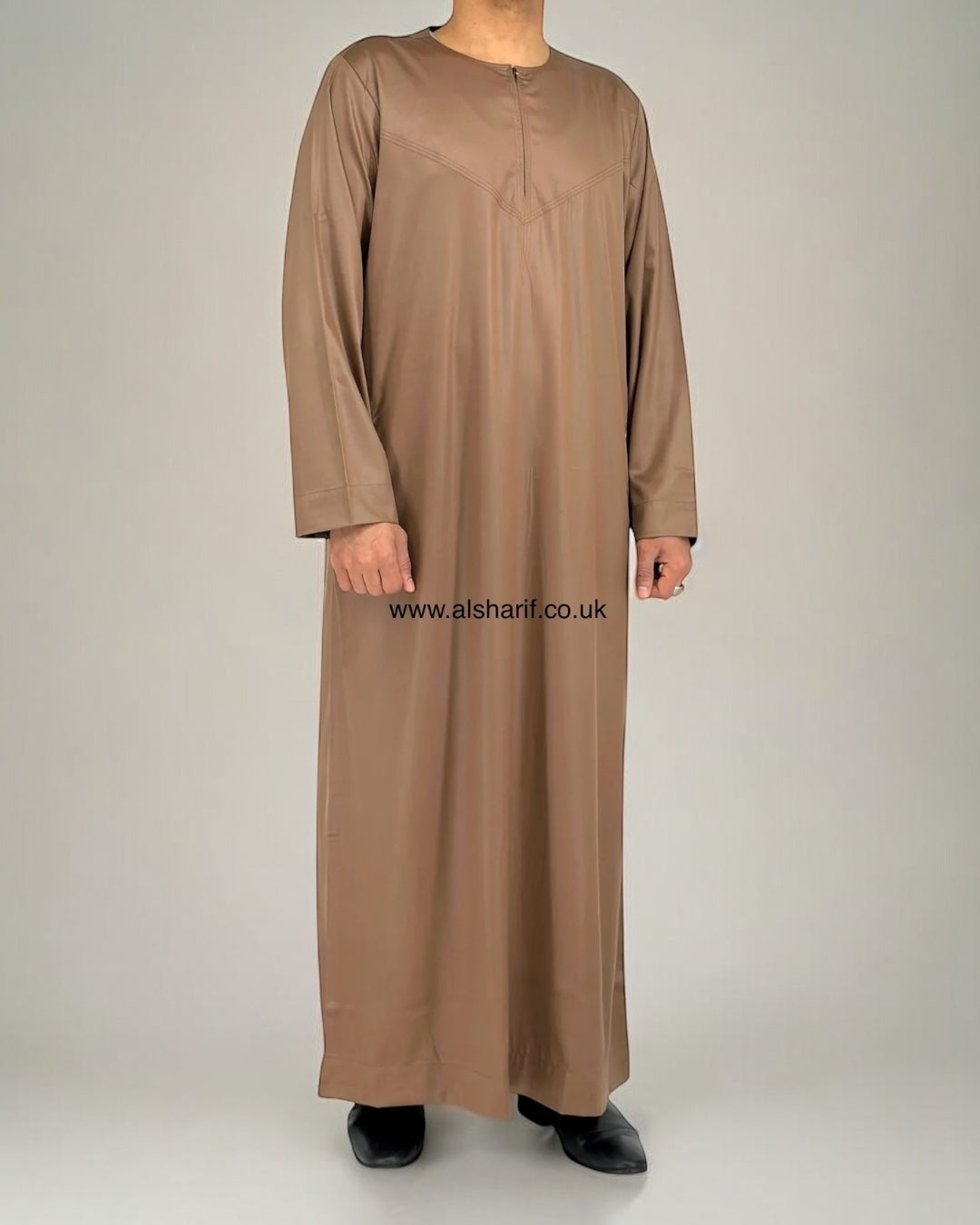 Brown Silky Thobe / Jubba Collarless With Zip (Size 60) 21