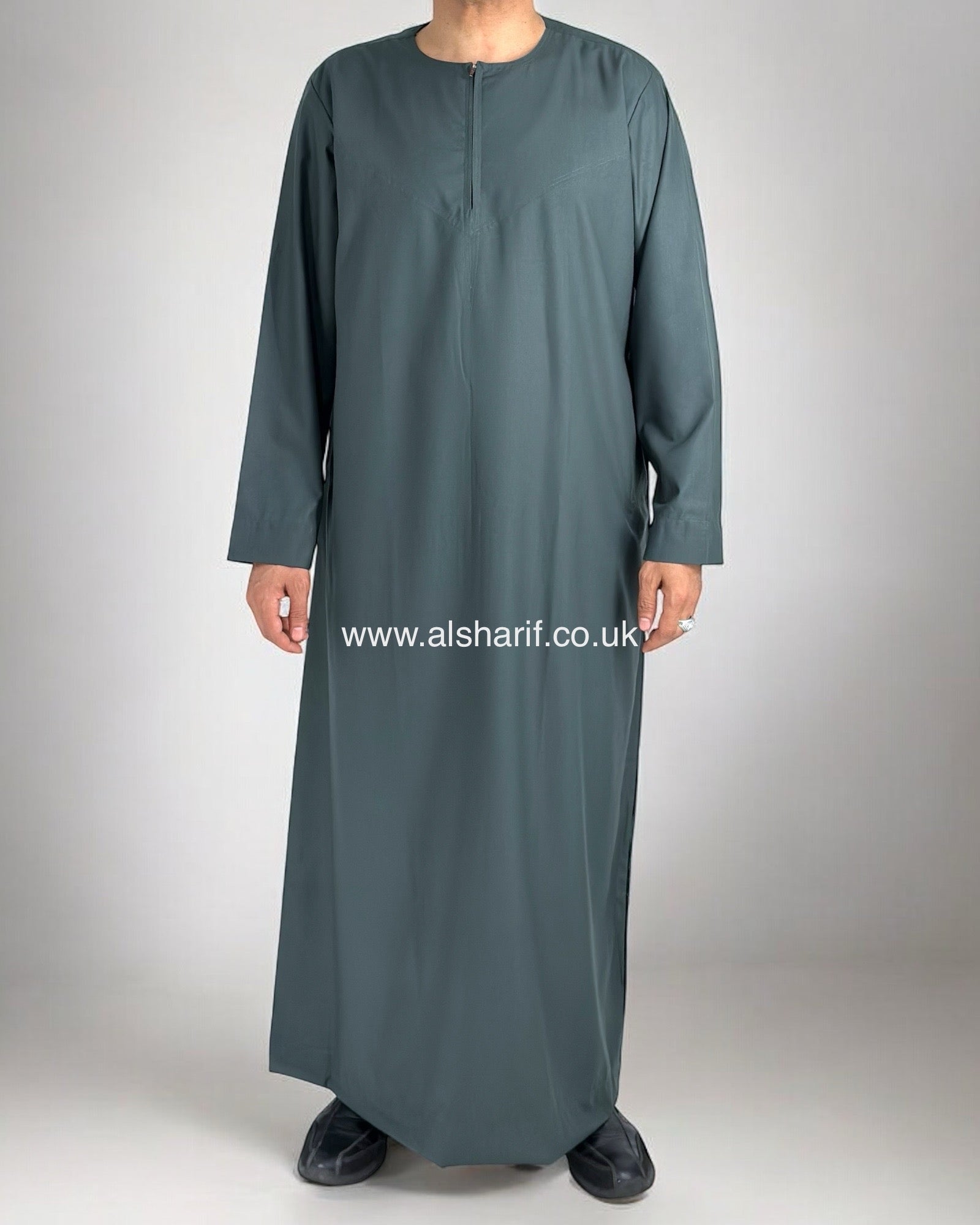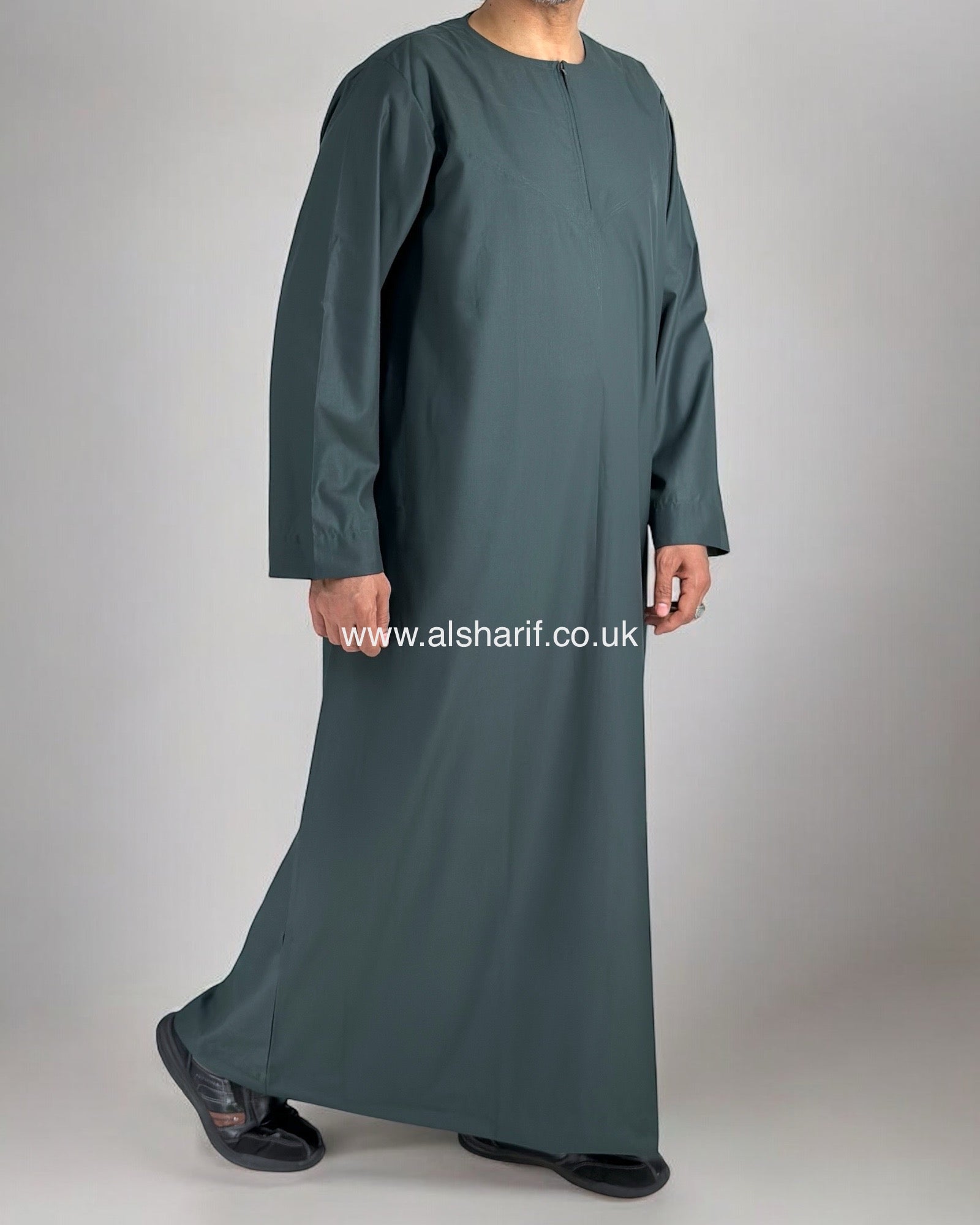 Dark Green Thobe Collarless With Zip (Size 58) 12