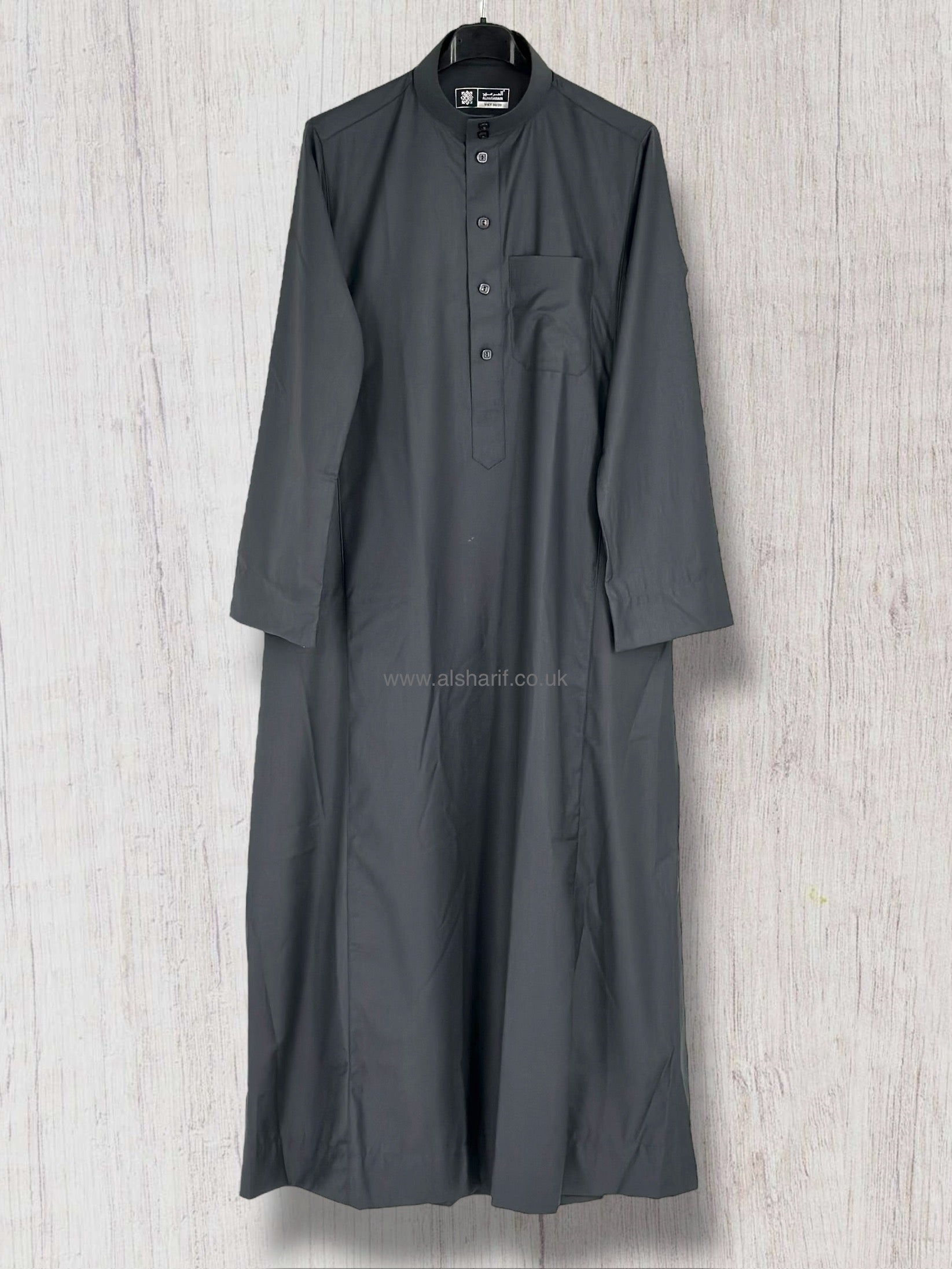 Dark Grey Matte Collared Buttoned Thobe (50-9)