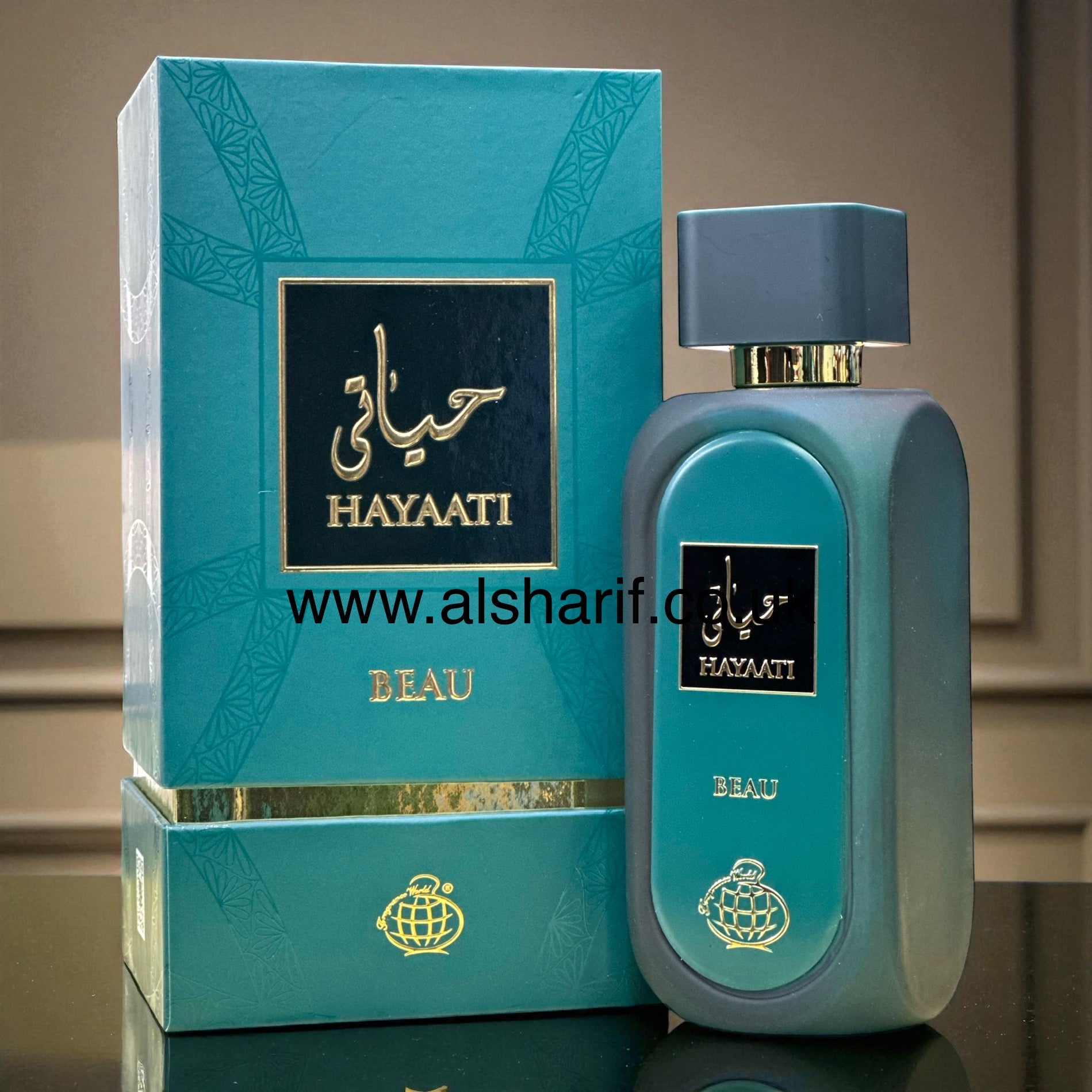 Express yourself out loud with this 100ml Hayaati Beau Parfume by Fragrance World. If you are a fragrance lover of bold, fresh, tropical, and earthy notes, this could be a great choice to try. Its bold yet refined olfactory experience leaves a unique impression and makes you feel confident all day long. Perfect for men who love a fruity and rich aromatic fragrance that will speak for them. The scent opens with a refreshing burst of mixed aromas that are both energetic and alluring. Each note will mesmerize you one by one and take you to a world of tranquil fragrance bliss.