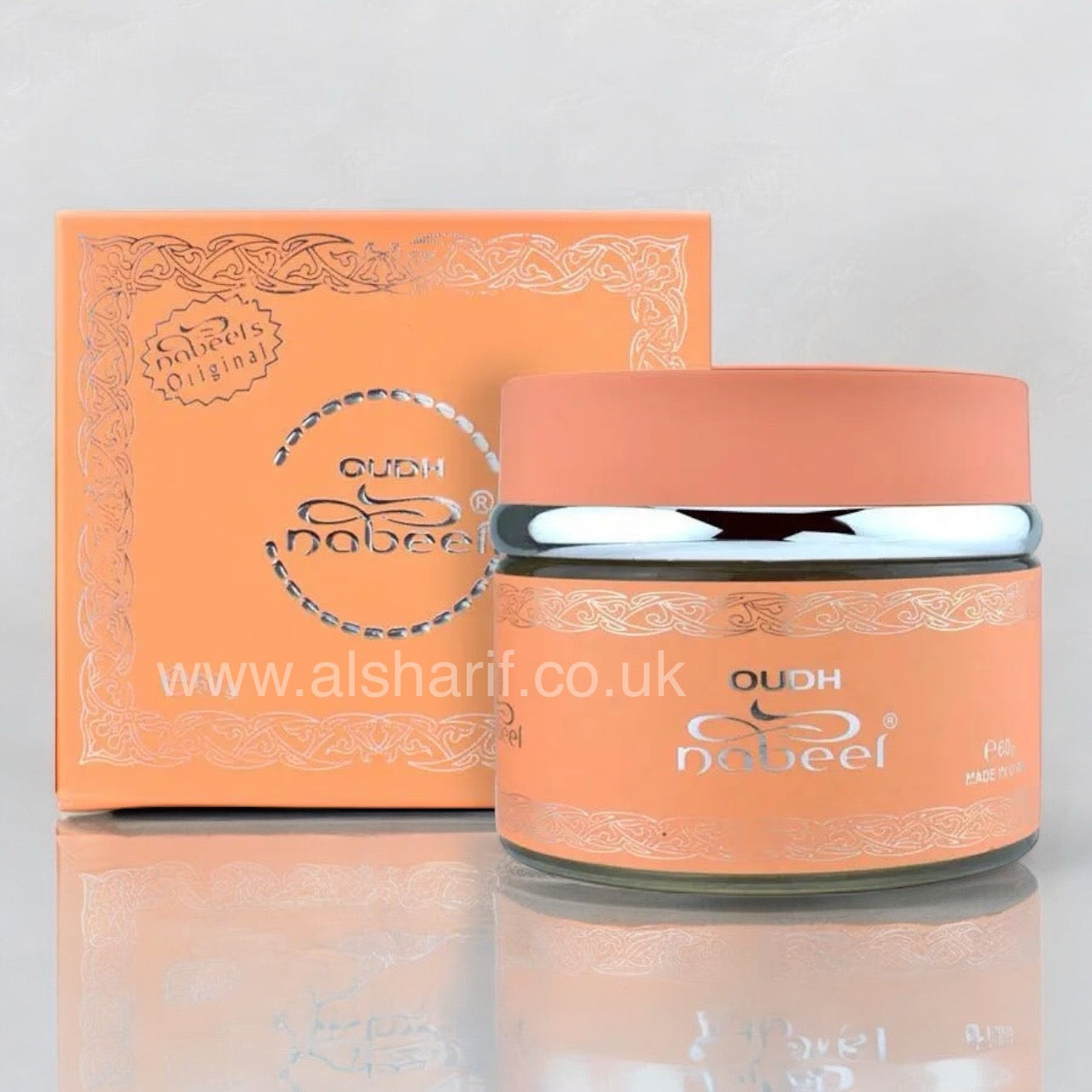 Nabeel Oudh 60g is a luxurious incense that fills your space with a rich and inviting fragrance. Expertly crafted with a harmonious blend of fresh, floral, and woody notes, this bakhoor creates a warm and captivating atmosphere. Ideal for home, office, or special occasions, it offers a long-lasting and refined scent experience.