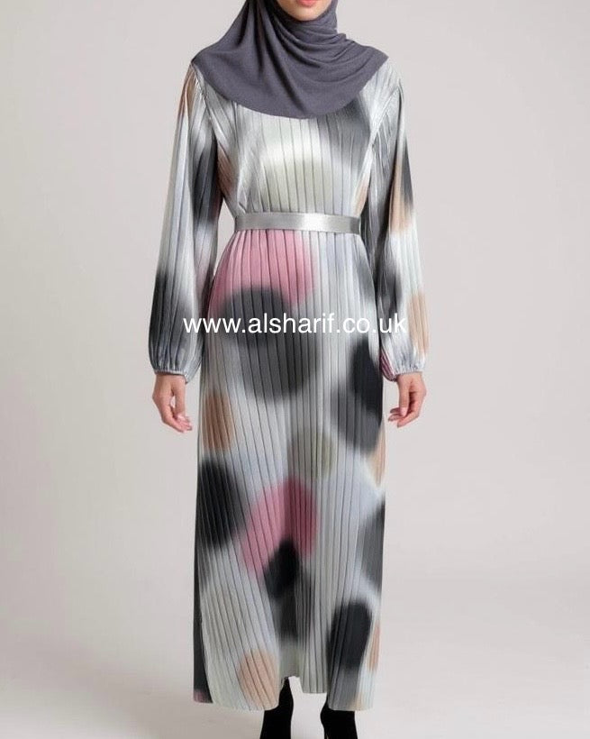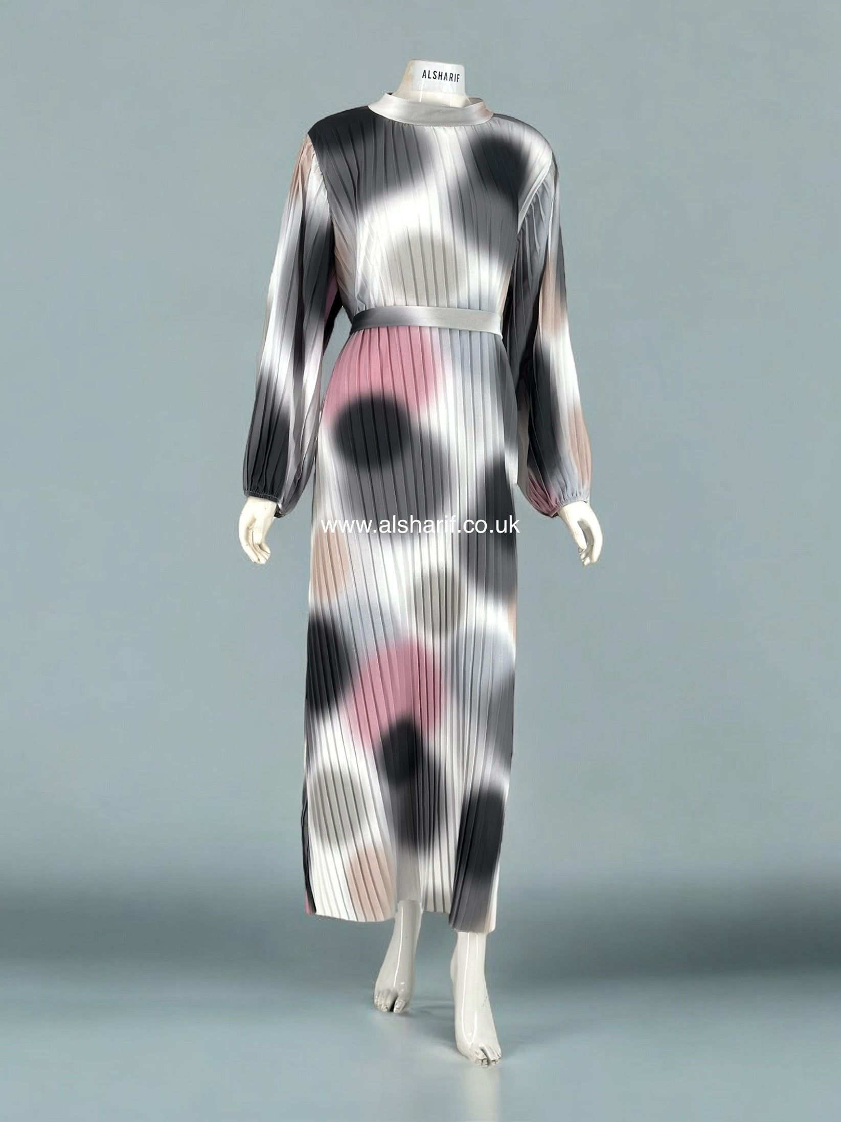 Our pleated artistic blurred maxi dress design is suitable for formal or semi-formal occasions. The overall style is modern, with a unique artistic print.
