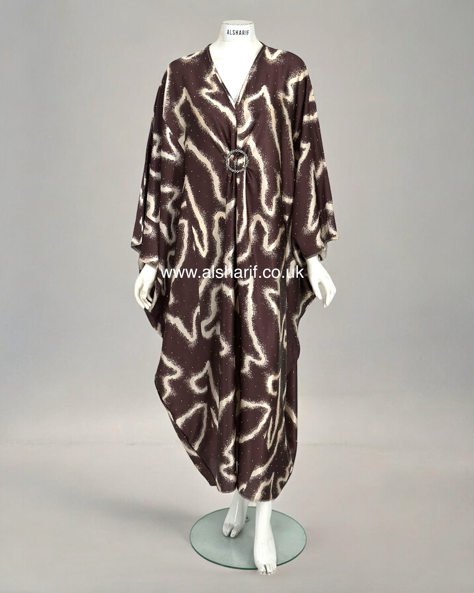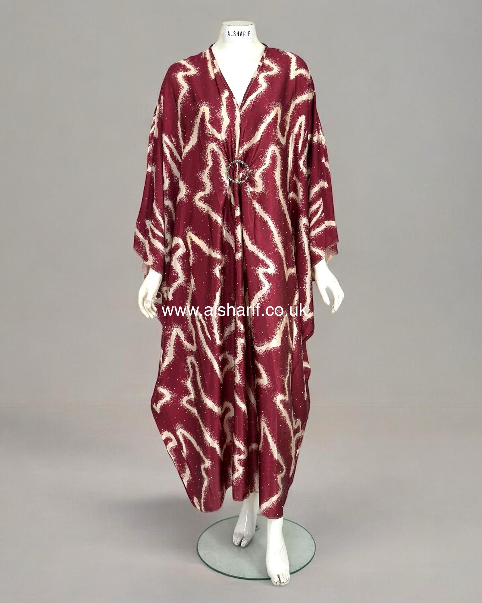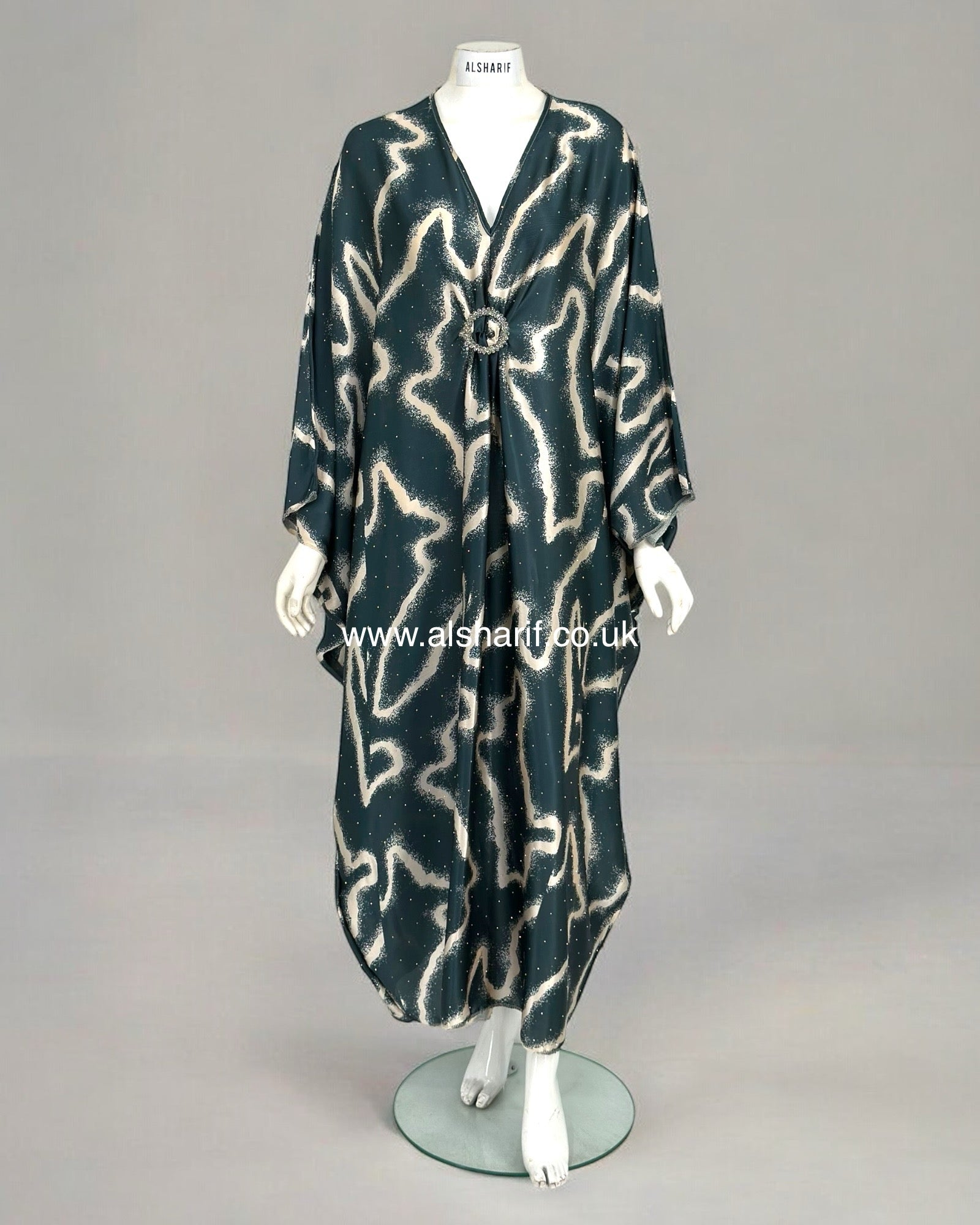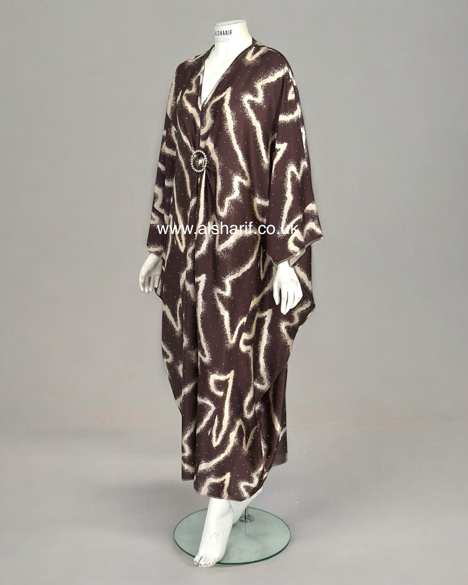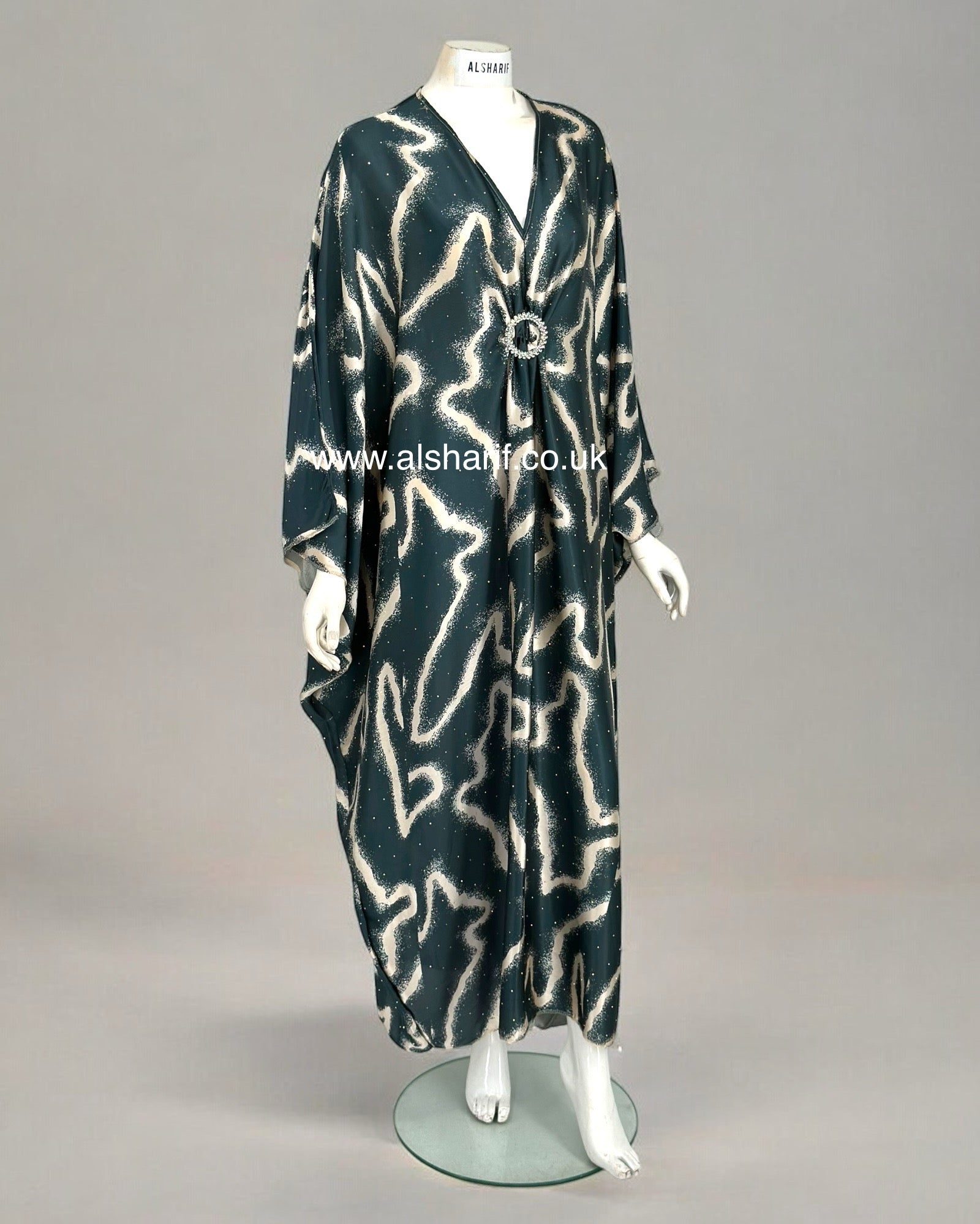 Rhinestone Satin Brooch Batwing Kaftan Dress