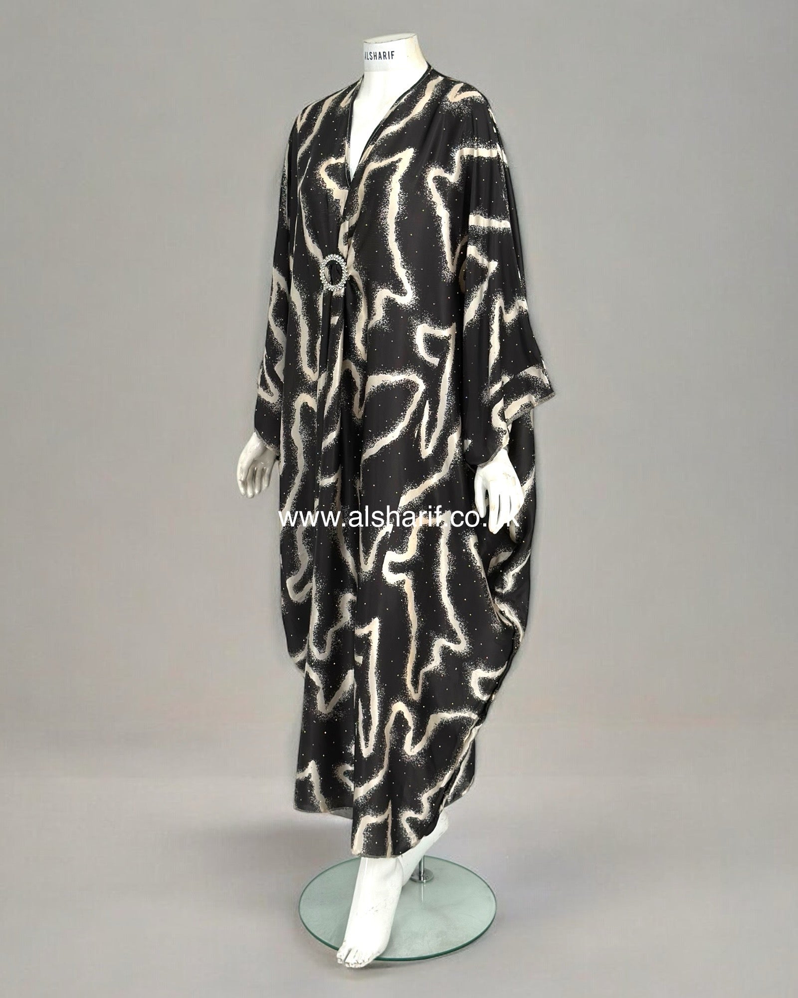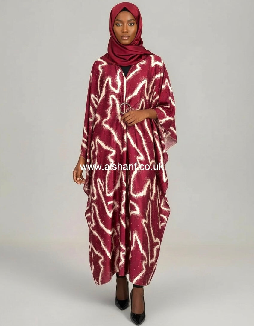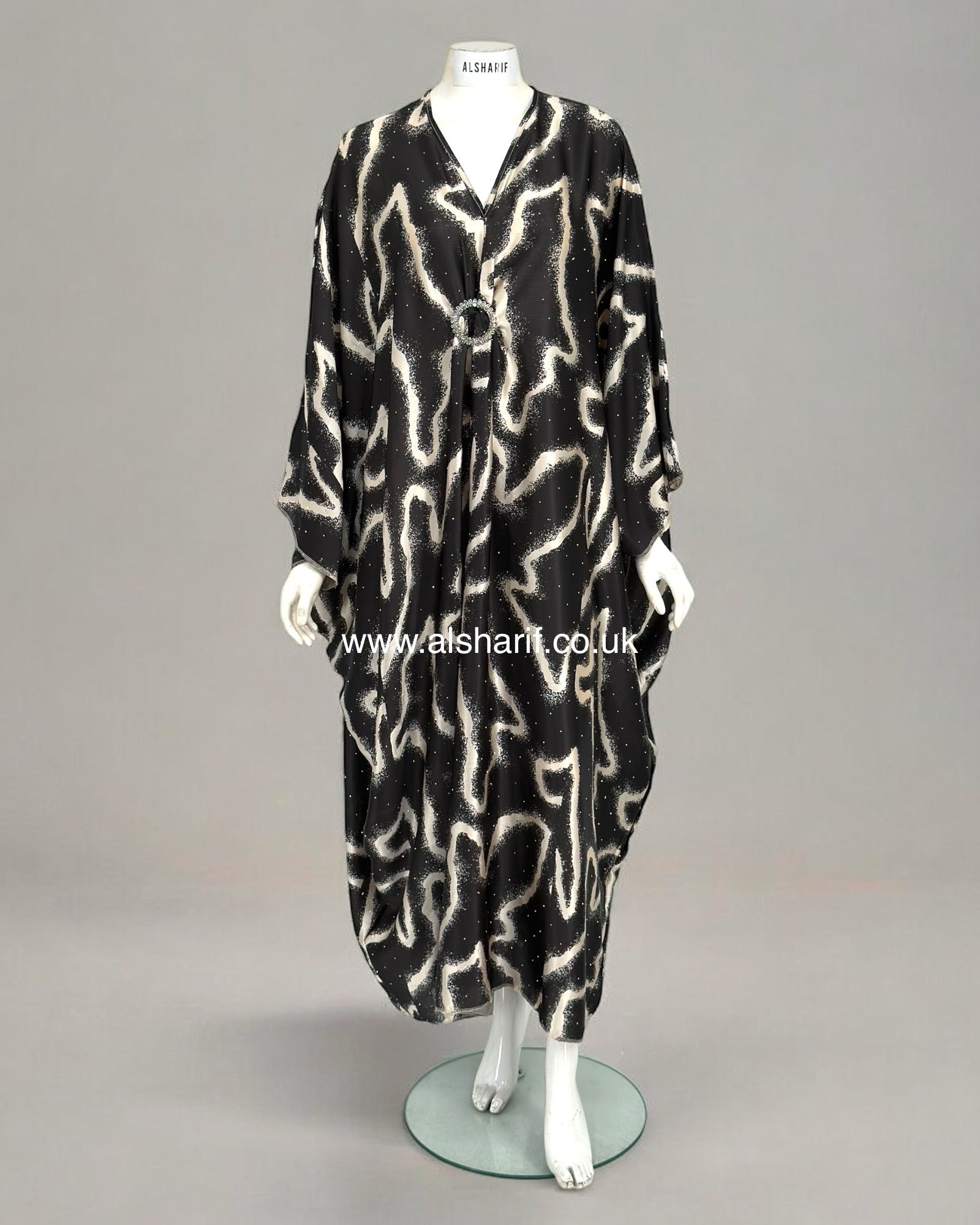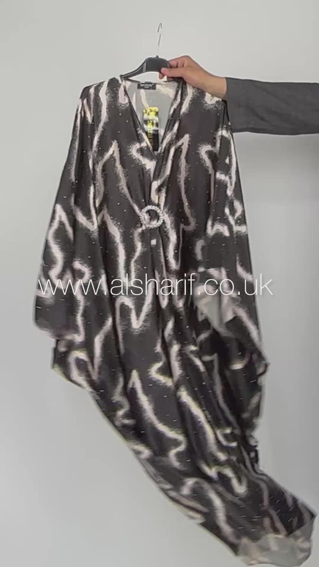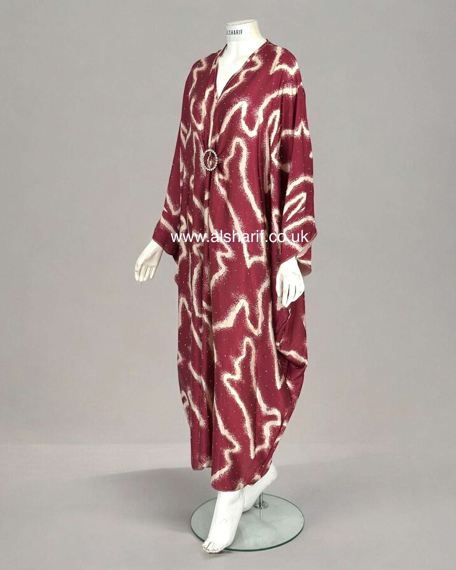 Rhinestone Satin Brooch Batwing Kaftan Dress