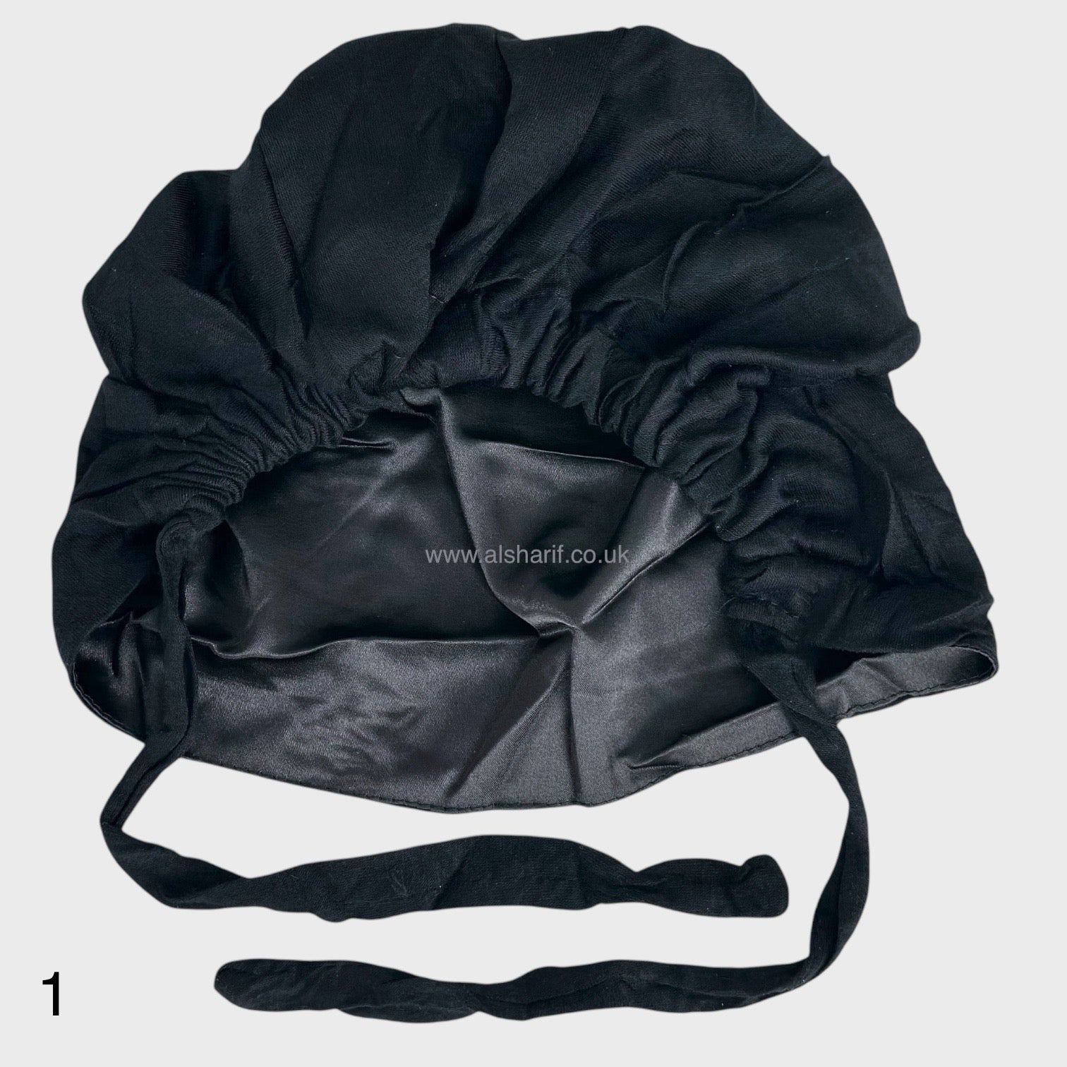 Satin lined undercap with a tie back. Satin caps have many advantages such as, locking in moisture, controlling frizz, prevents hair loss and breakage, improves scalp health, and keeps hair smelling fresh for longer.