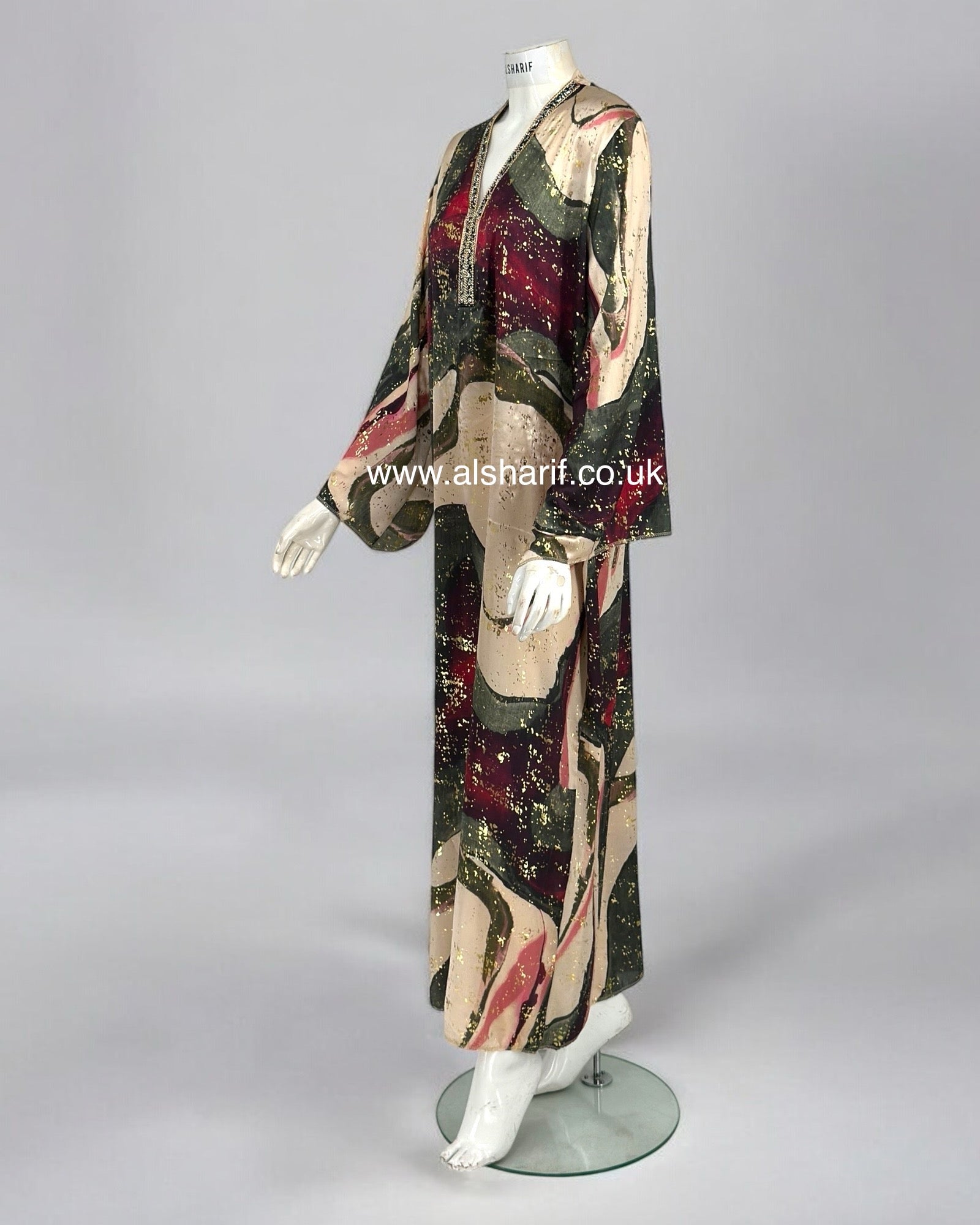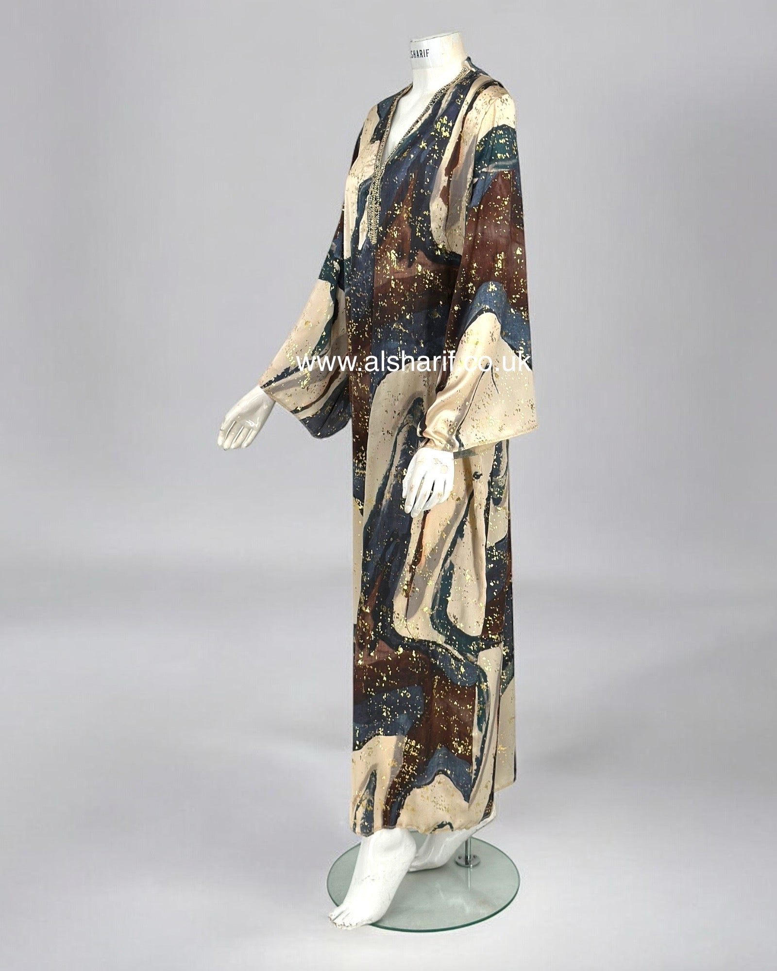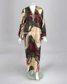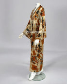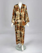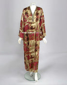 Elegant and effortless. This satin print maxi dress features rich earthy tones, a relaxed fit, and a touch of sparkle at the neckline. This piece is accented with delicate metallic gold specks that shimmer beautifully under the light. Perfect for special occasions or evening events.