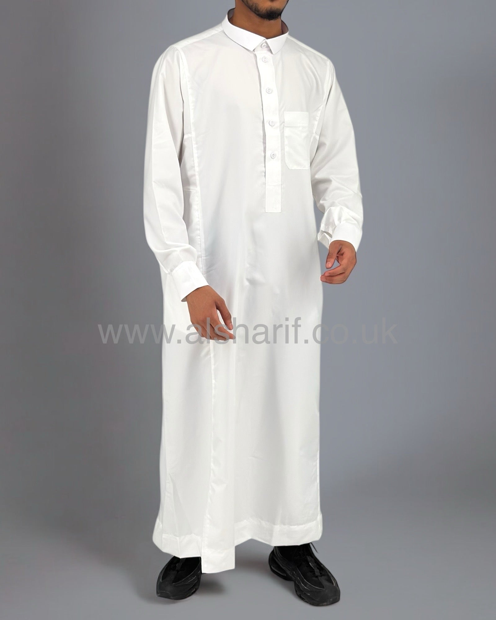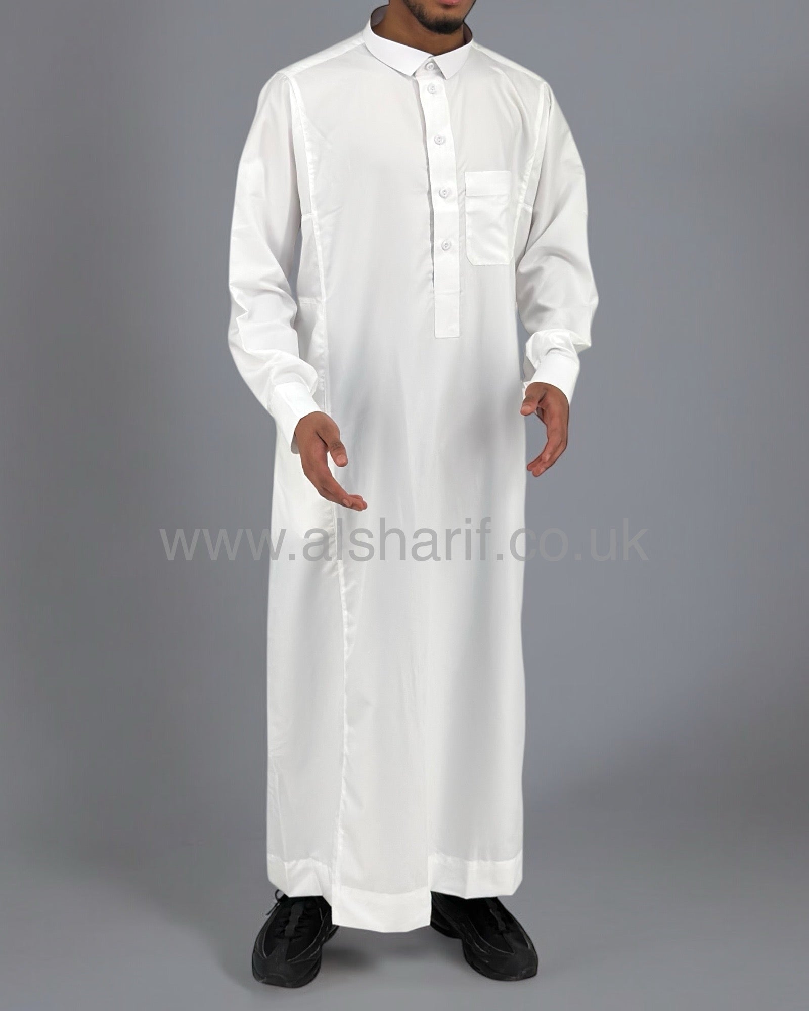 White Matte Collared Buttoned Thobe (Size 54-24) 14