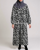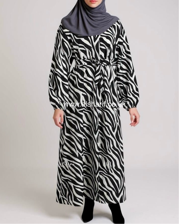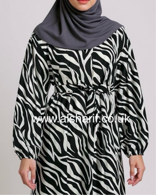 A zebra print maxi dress with a belt is a bold and stylish choice that combines classic patterns with modern fashion.